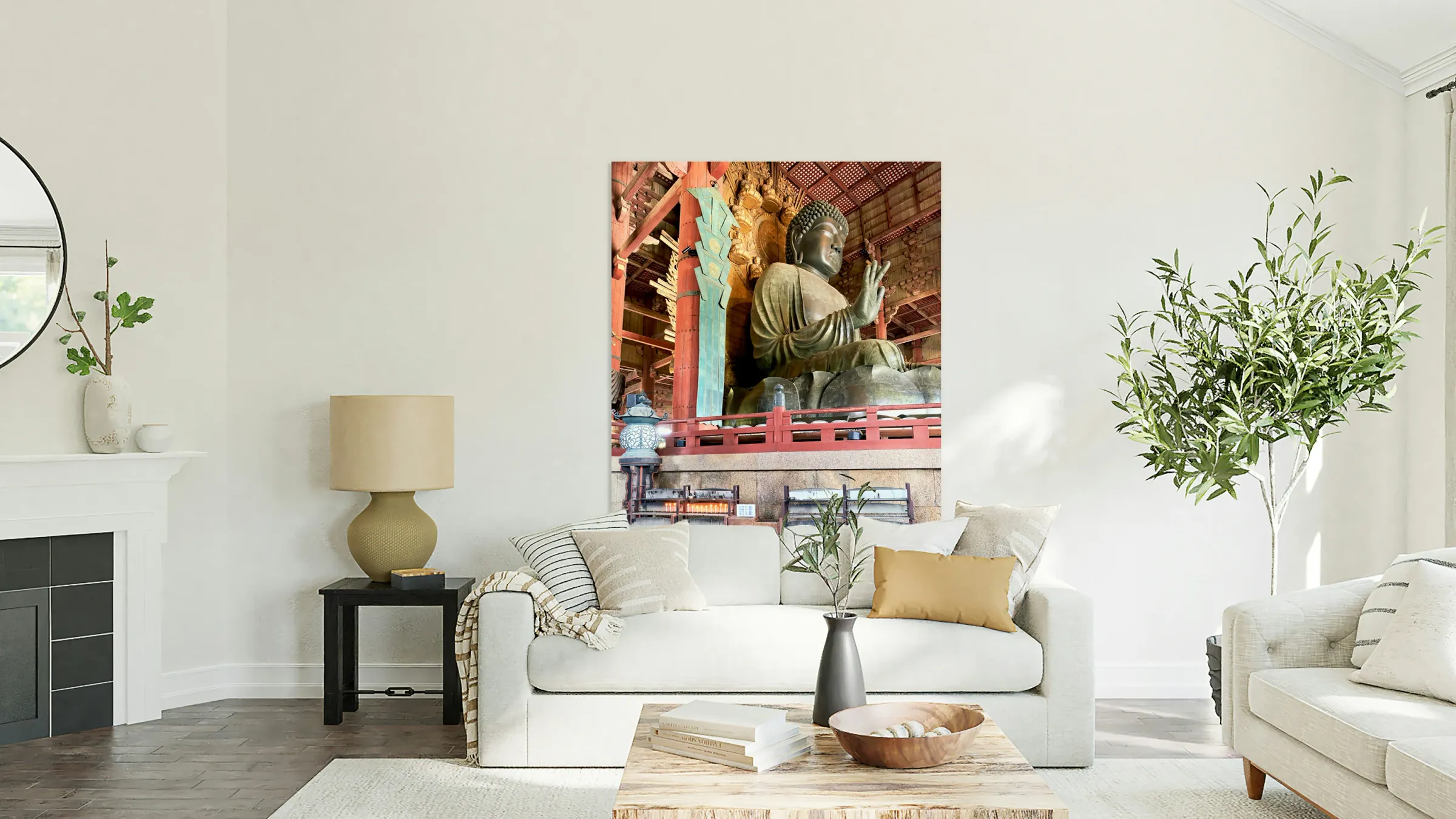 ABOUT THIS ARTWORK: GREAT BUDDHA HALL AT TODAI JI TEMPLE IN NARA JAPAN INVITES VISI
