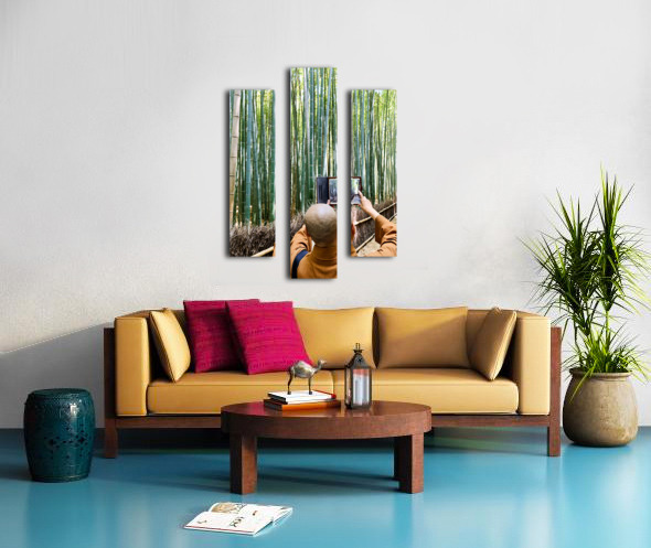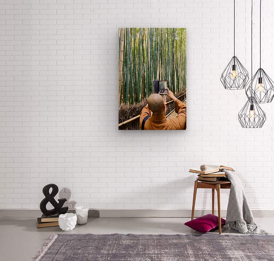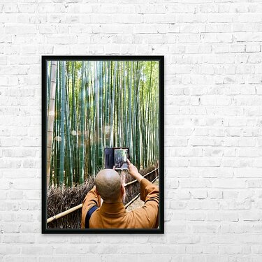 Get this artwork "Buddhist monk takes pictures in Arashiyama Bamboo Grove in Japan" in a framed print.