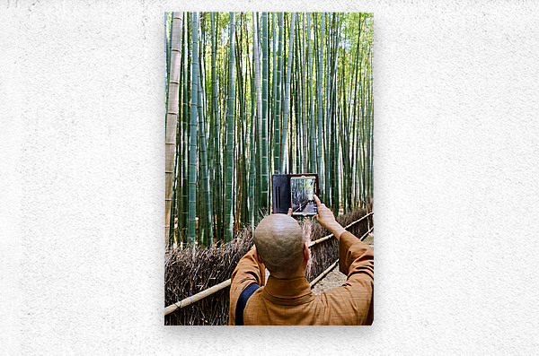 ABOUT THIS ARTWORK: BUDDHIST MONK TAKES PICTURES IN ARASHIYAMA BAMBOO GROVE IN JAPAN