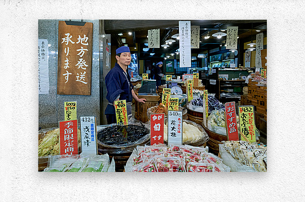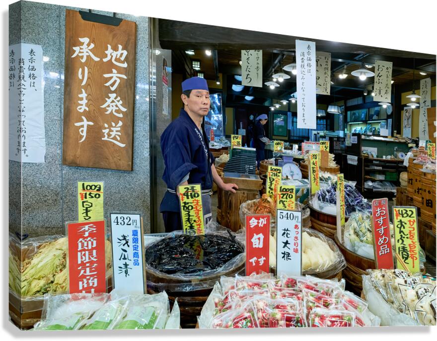 Get this artwork "Vendors and products at Kyotos Nishiki Market" in a framed print.