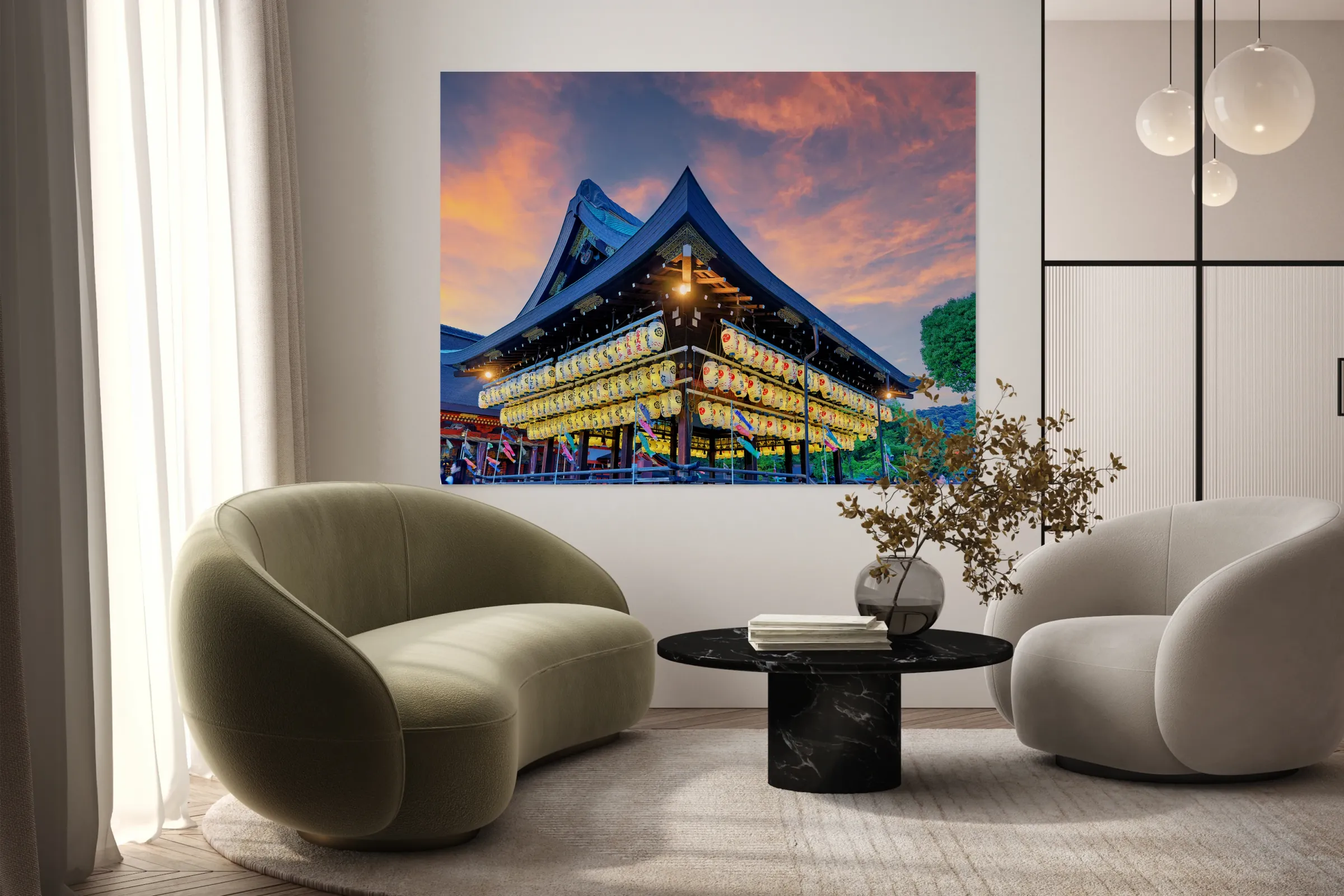 ABOUT THIS ARTWORK: YASAKA SHRINE IN KYOTO WITH LANTERNS DURING SUNSET