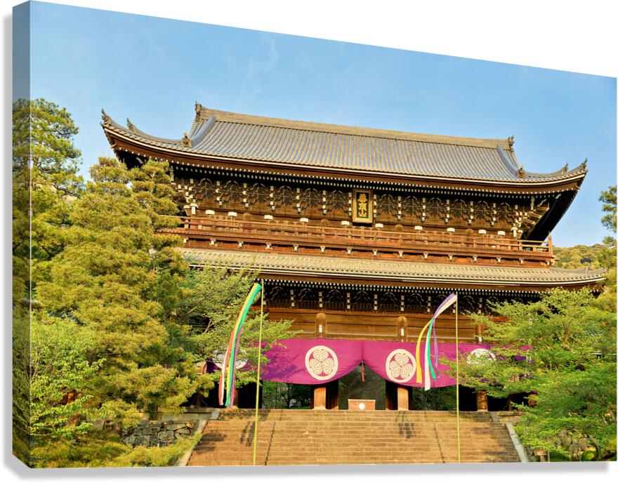 Get this artwork "Chionin Temple view in Kyoto Japan with trees and decorations" in a framed print.