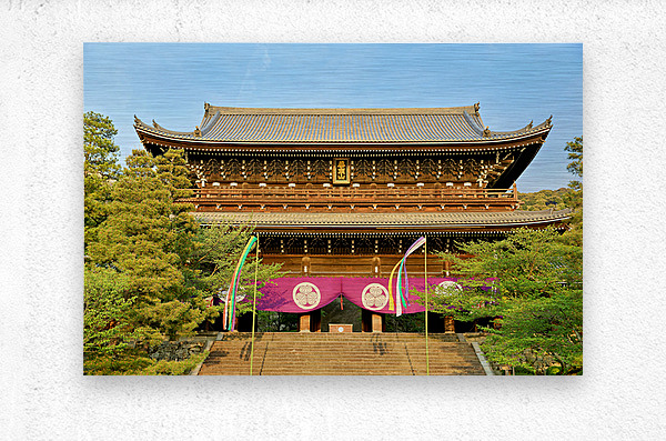 ABOUT THIS ARTWORK: CHIONIN TEMPLE VIEW IN KYOTO JAPAN WITH TREES AND DECORATIONS