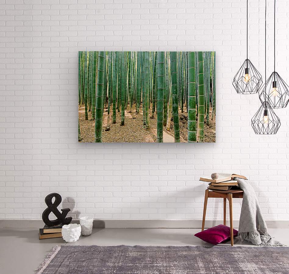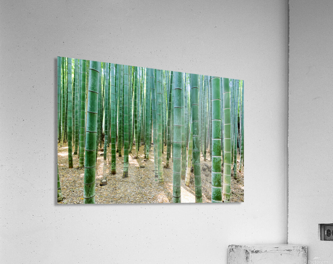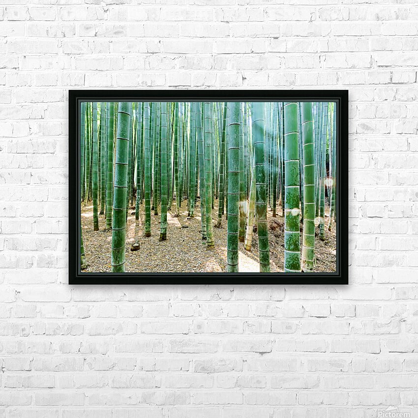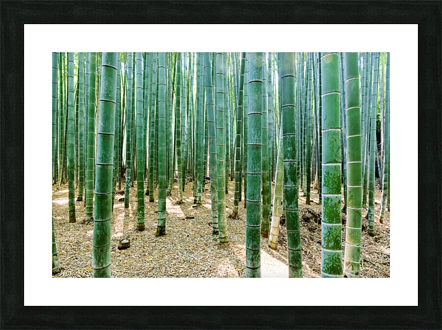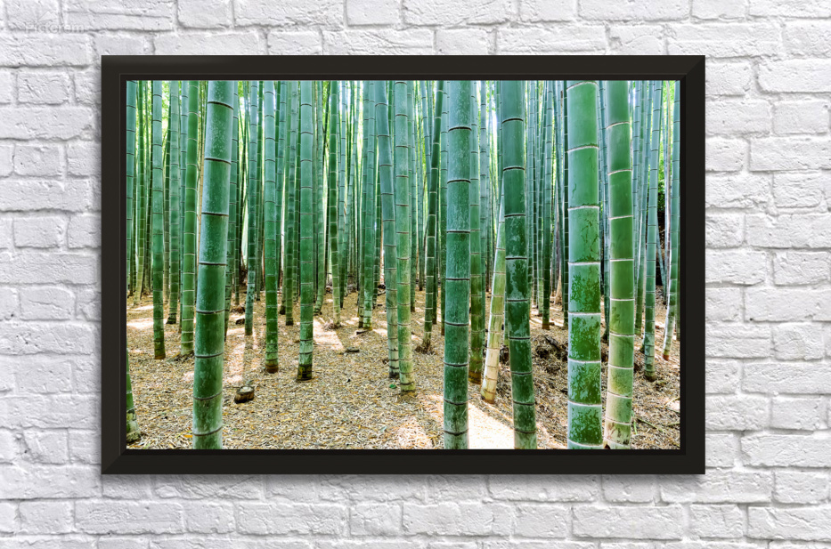 "Explore the beauty of Arashiyama Bamboo Grove in Kyoto Japan" in a framed print.