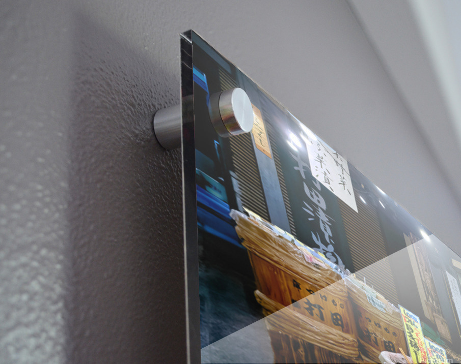 Printed to the edge - Ready to hang - provided with 4 premium polished aluminum stand off ( wall screws and mounting hardware provided )