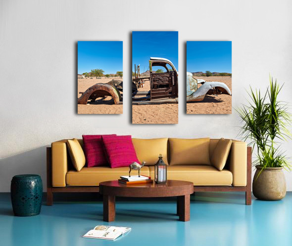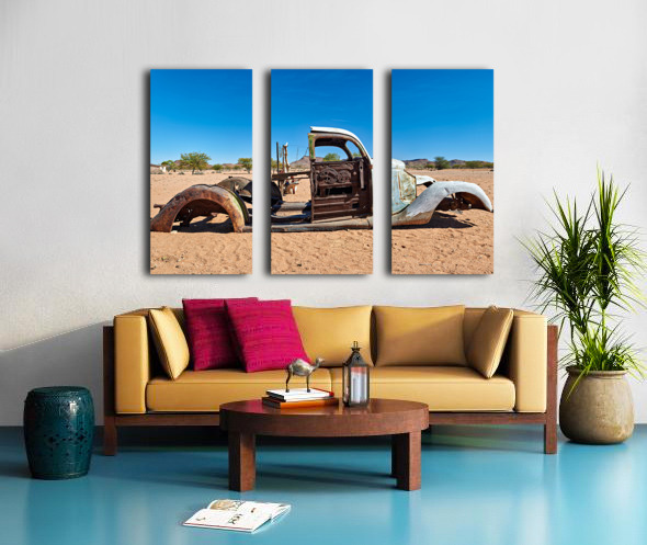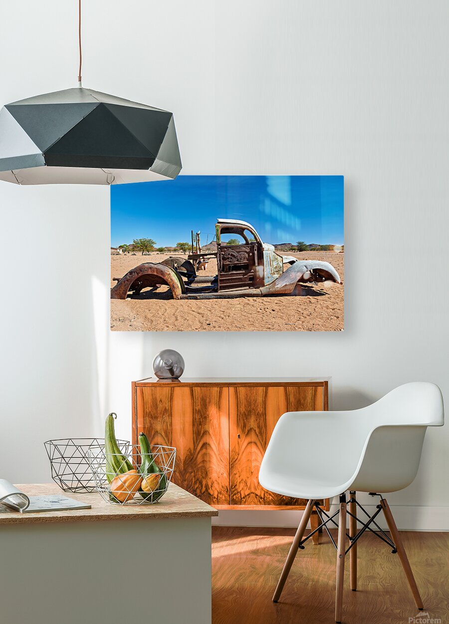 Get this artwork "Classic car wreck rests in the Namib desert under a clear sky" in a framed print.
