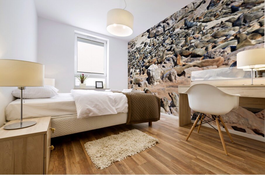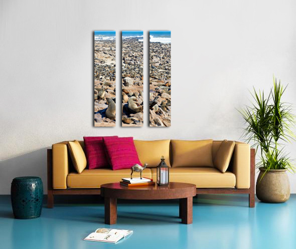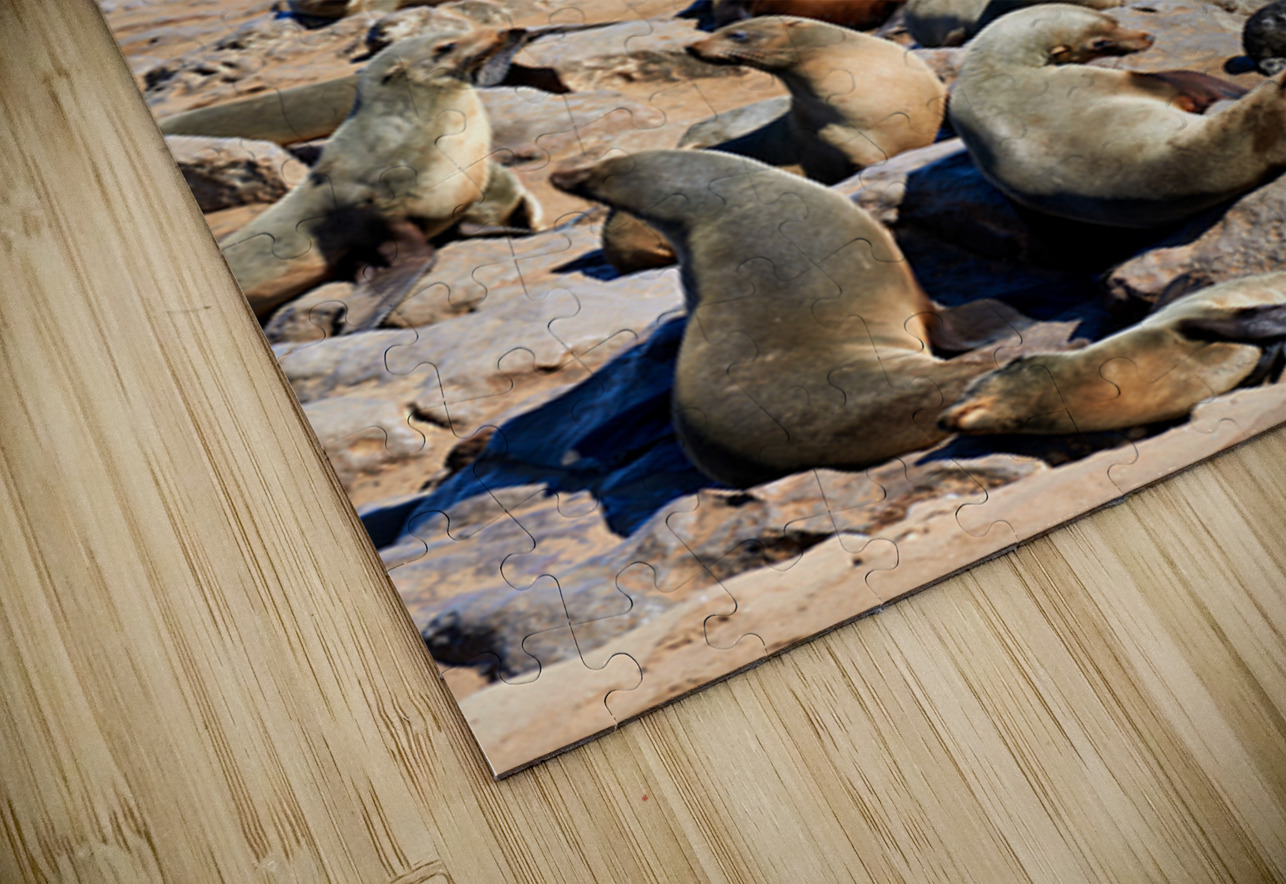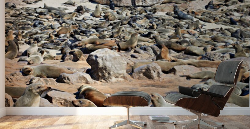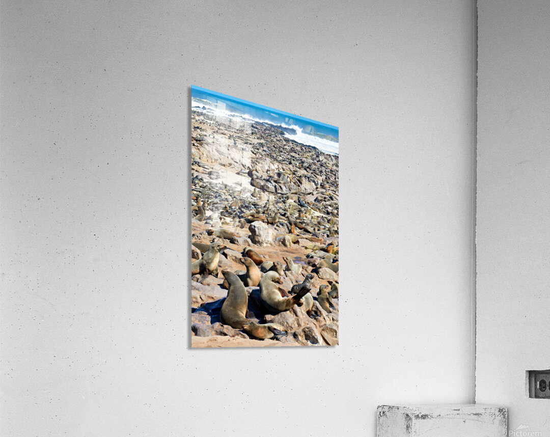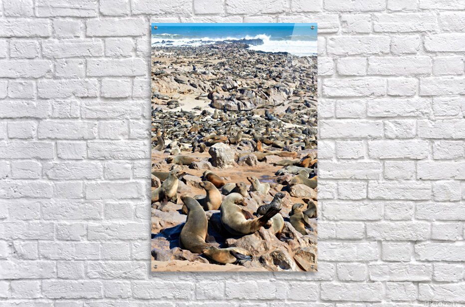 "Cape fur seals gather at Cape Cross in Namibias Skeleton Coast" in a framed print.