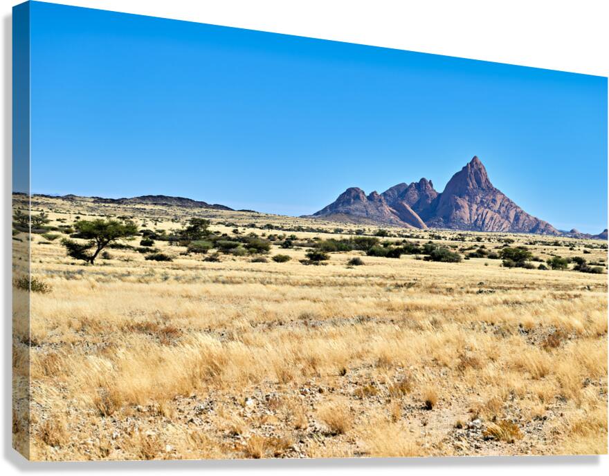 Get this artwork "Granite peaks of Spizkoppe rise above the Namib Desert in Namibi" in a framed print.
