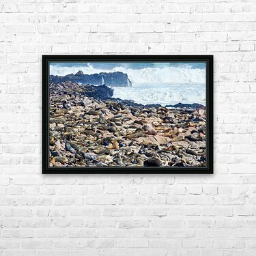ABOUT THIS ARTWORK: CAPE FUR SEALS RESTING ON SKELETON COAST IN NAMIBIA NEAR CAPE CR