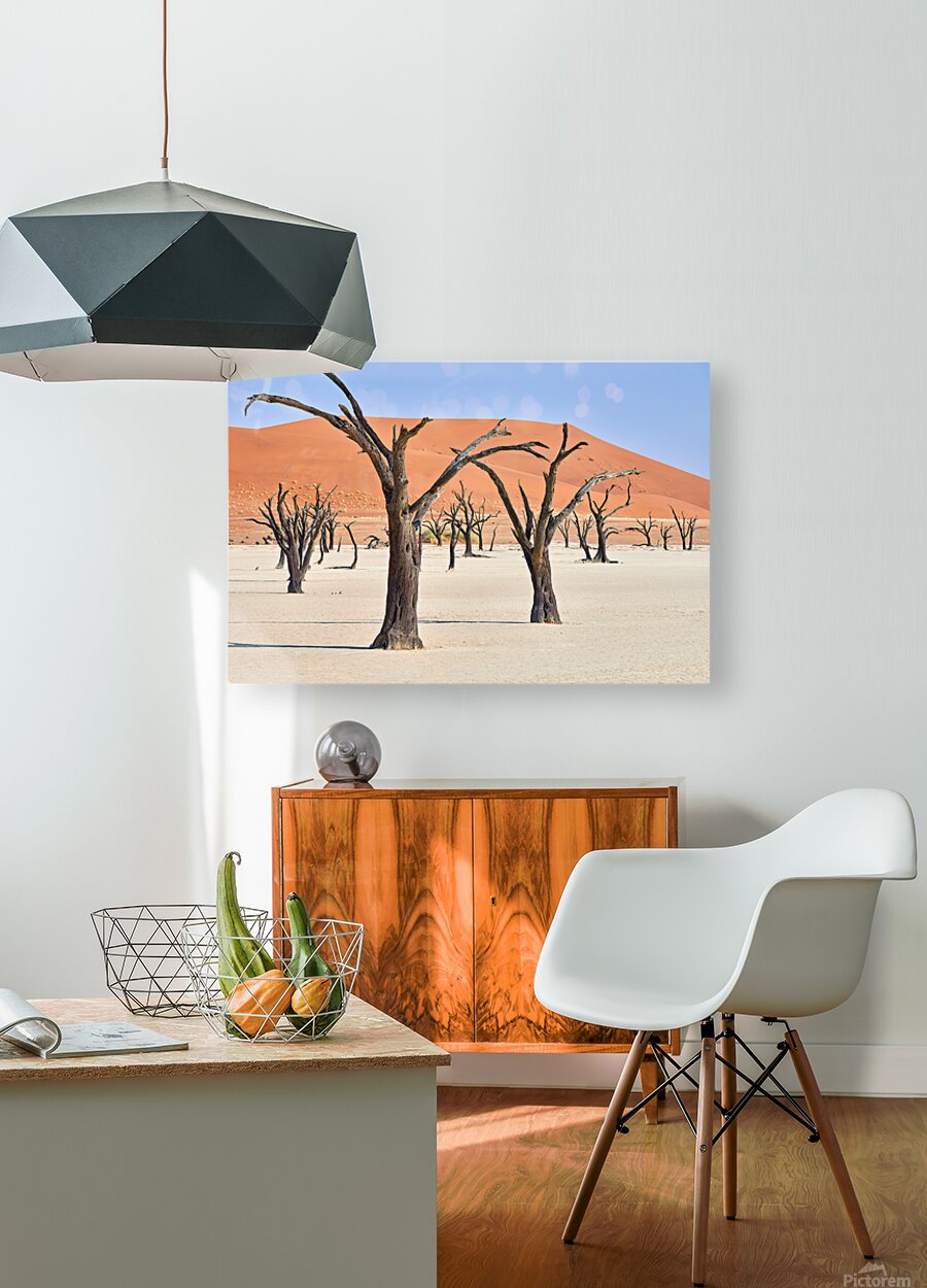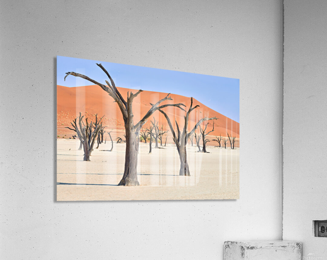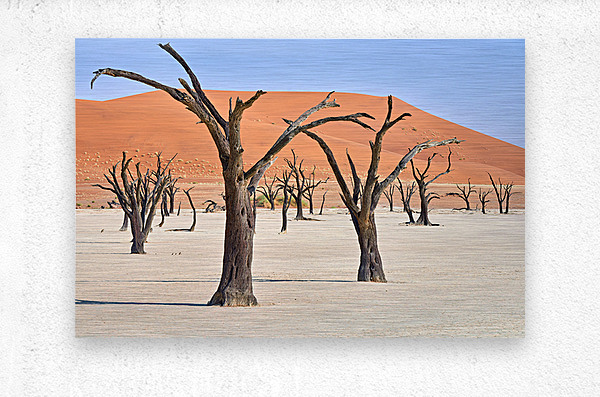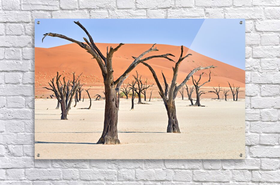 ABOUT THIS ARTWORK: DRIED CAMEL THORN TREES IN DEADVLEI PAN IN NAMIBIA