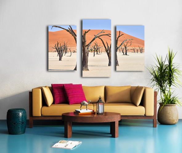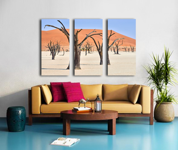 Get this artwork "Dried camel thorn trees in Deadvlei pan in Namibia" in a framed print.