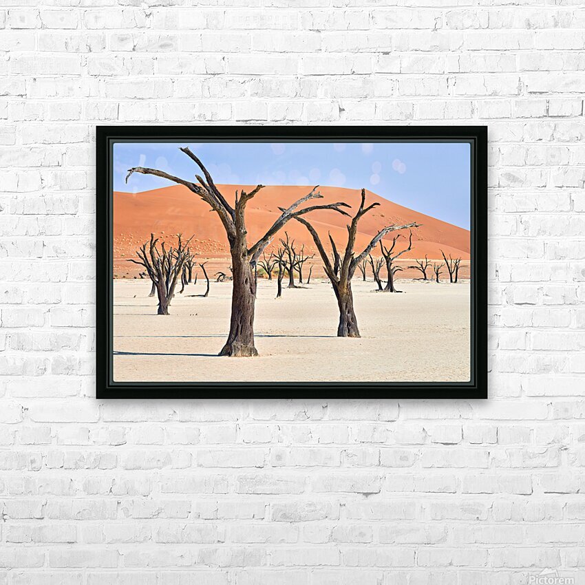 Dried camel thorn trees in Deadvlei pan in Namibia Picture Frame Printing