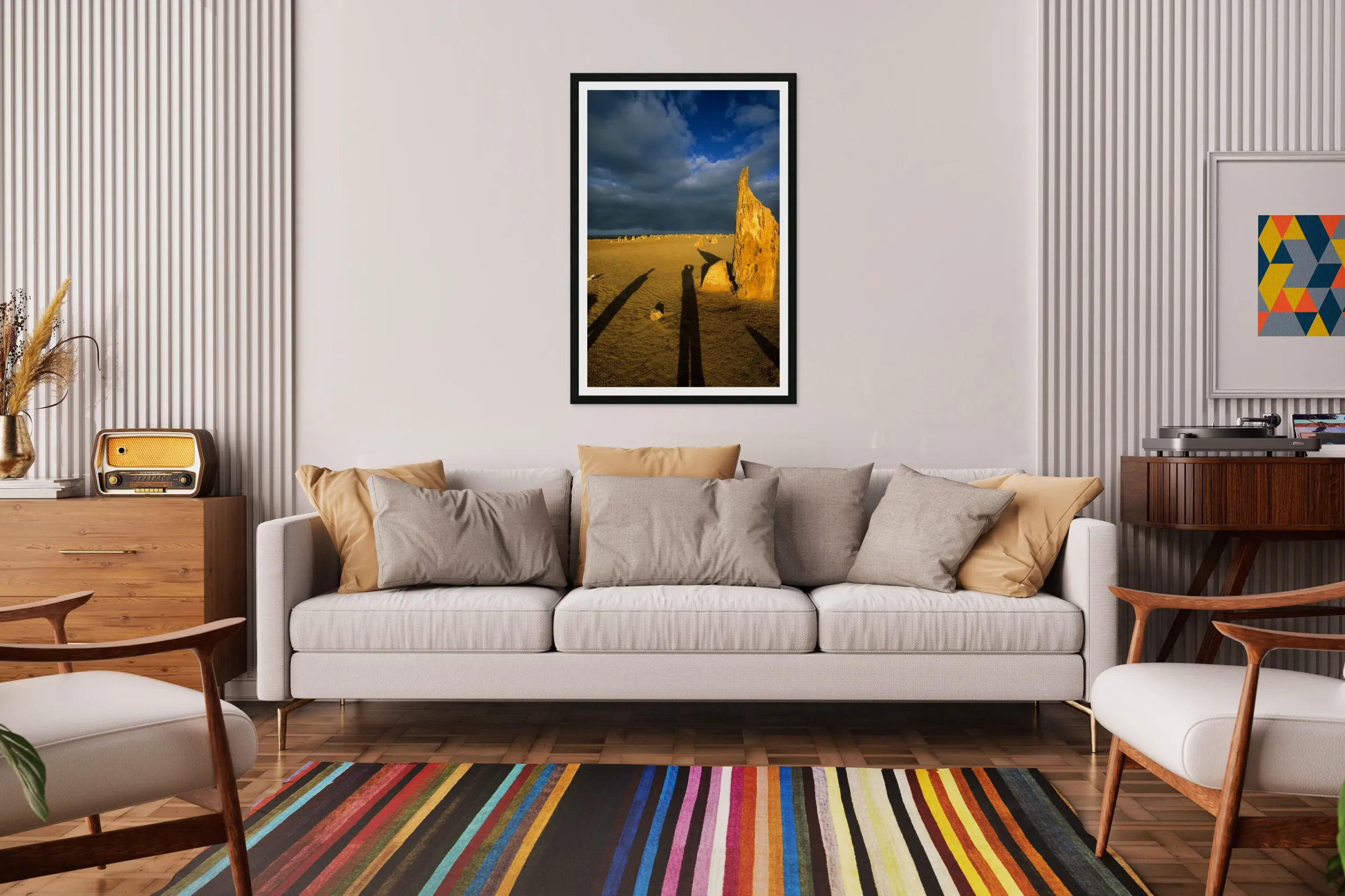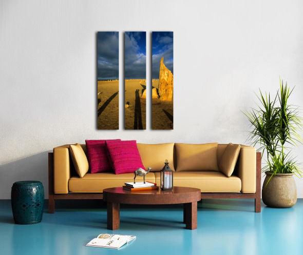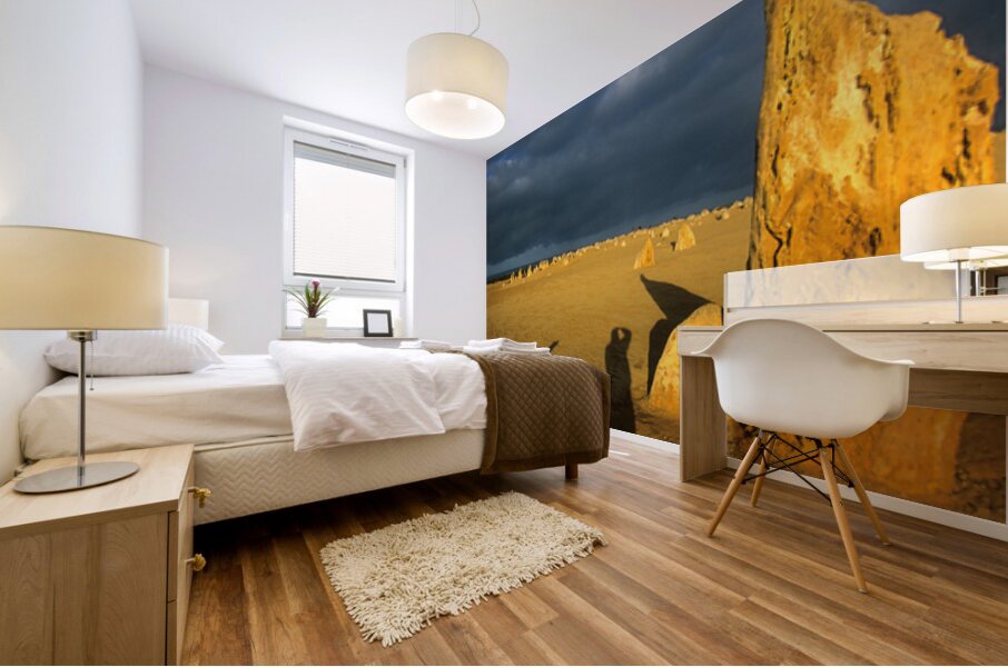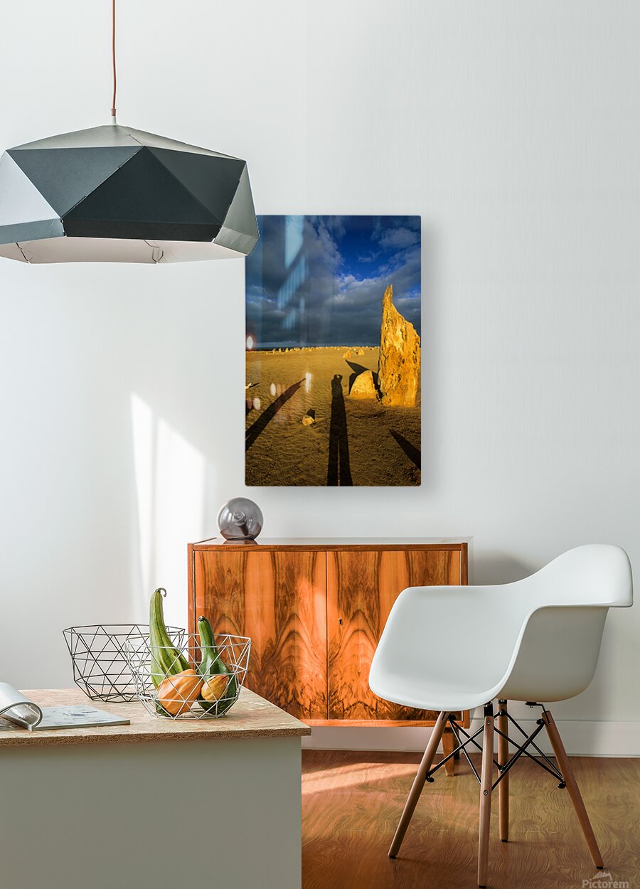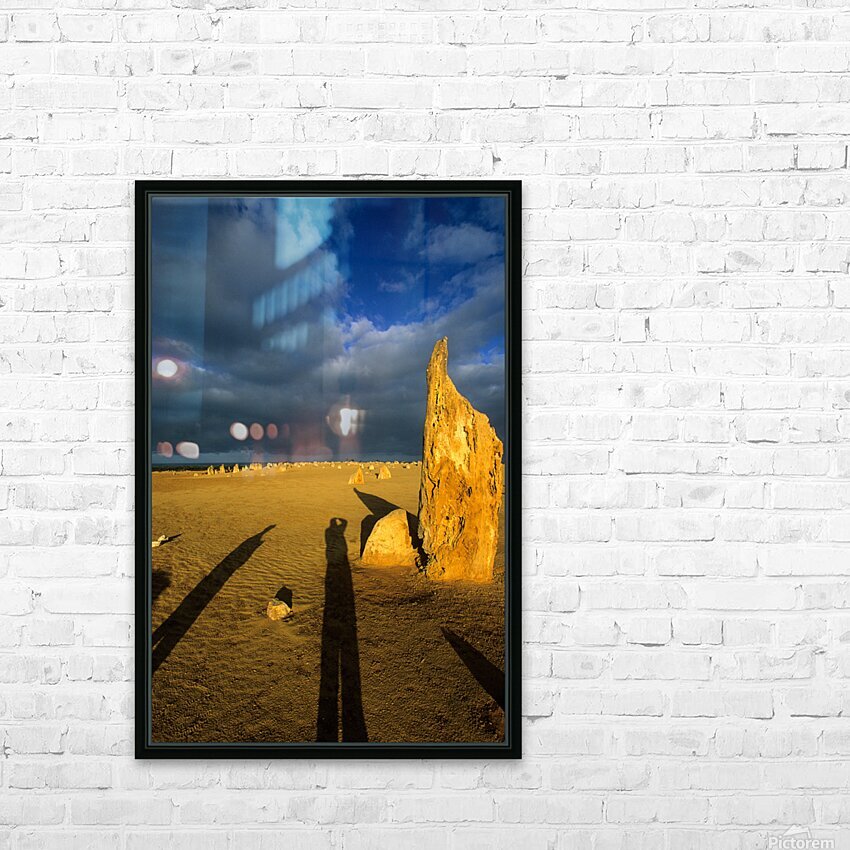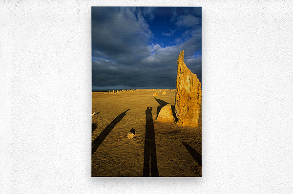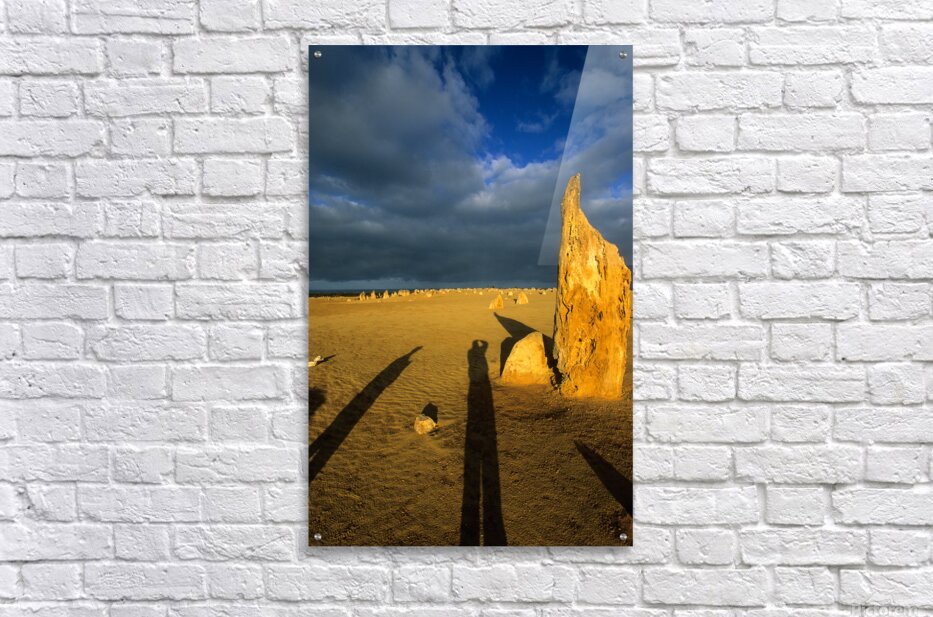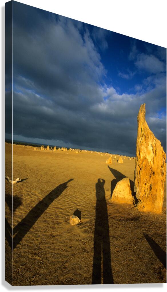 Photographers shadow falls on the Pinnacles desert at sunset. Frame print