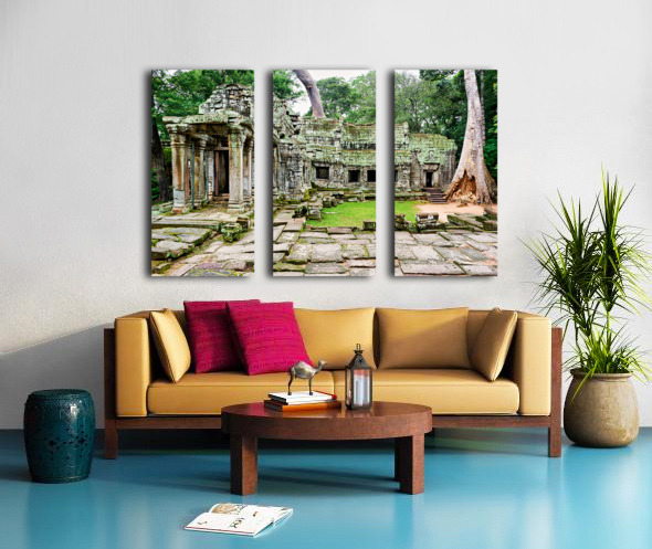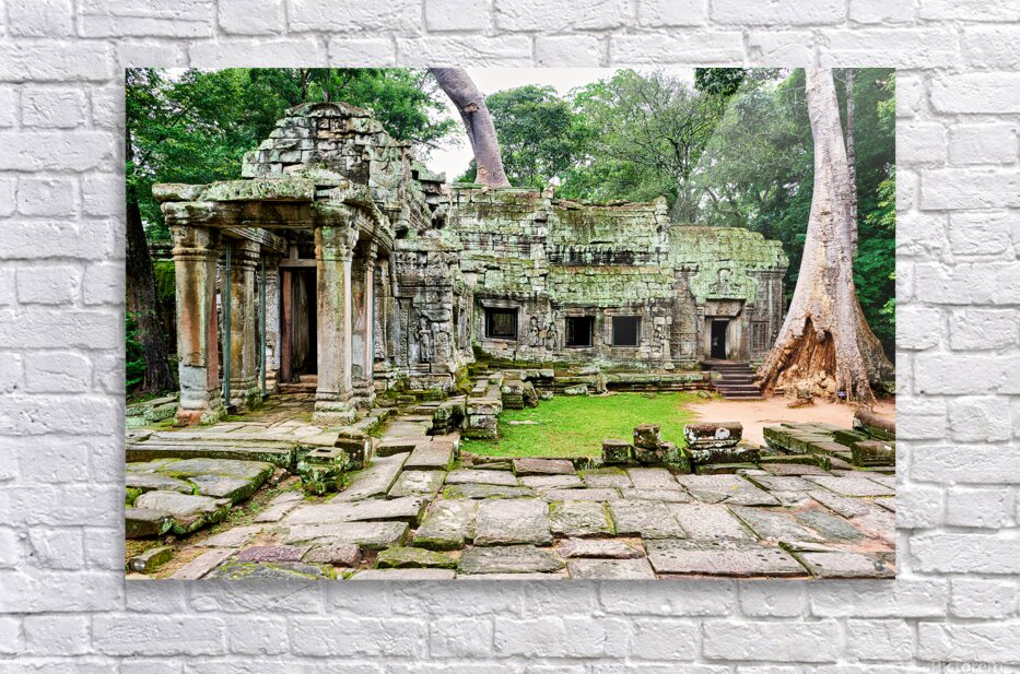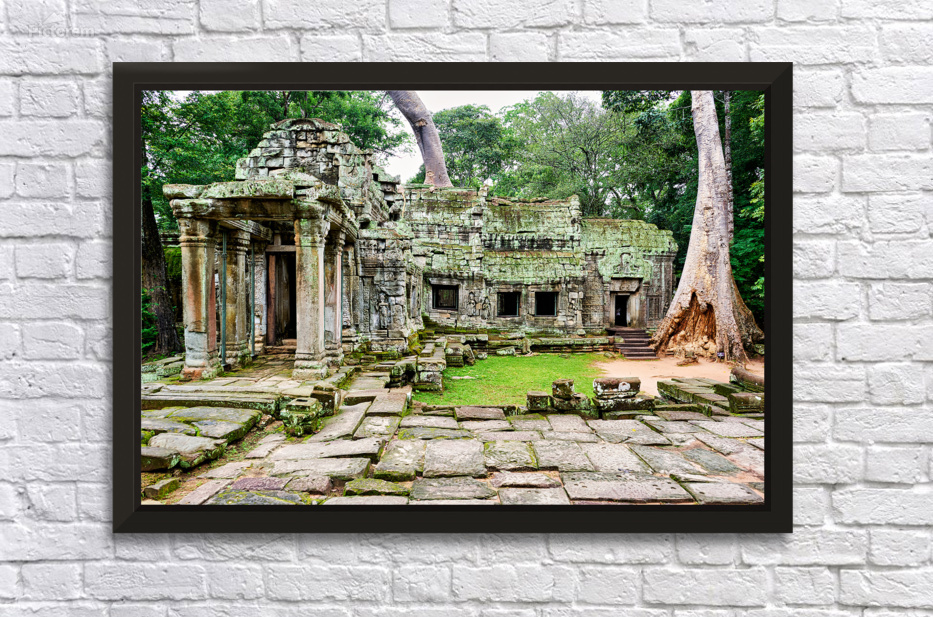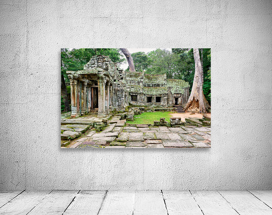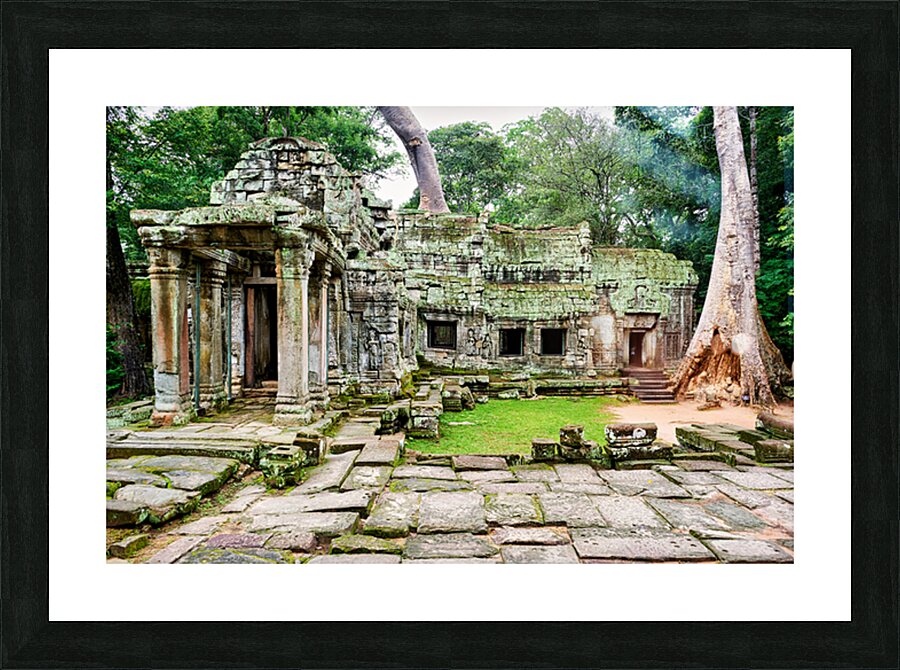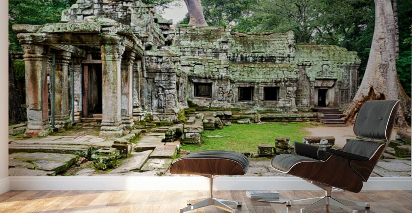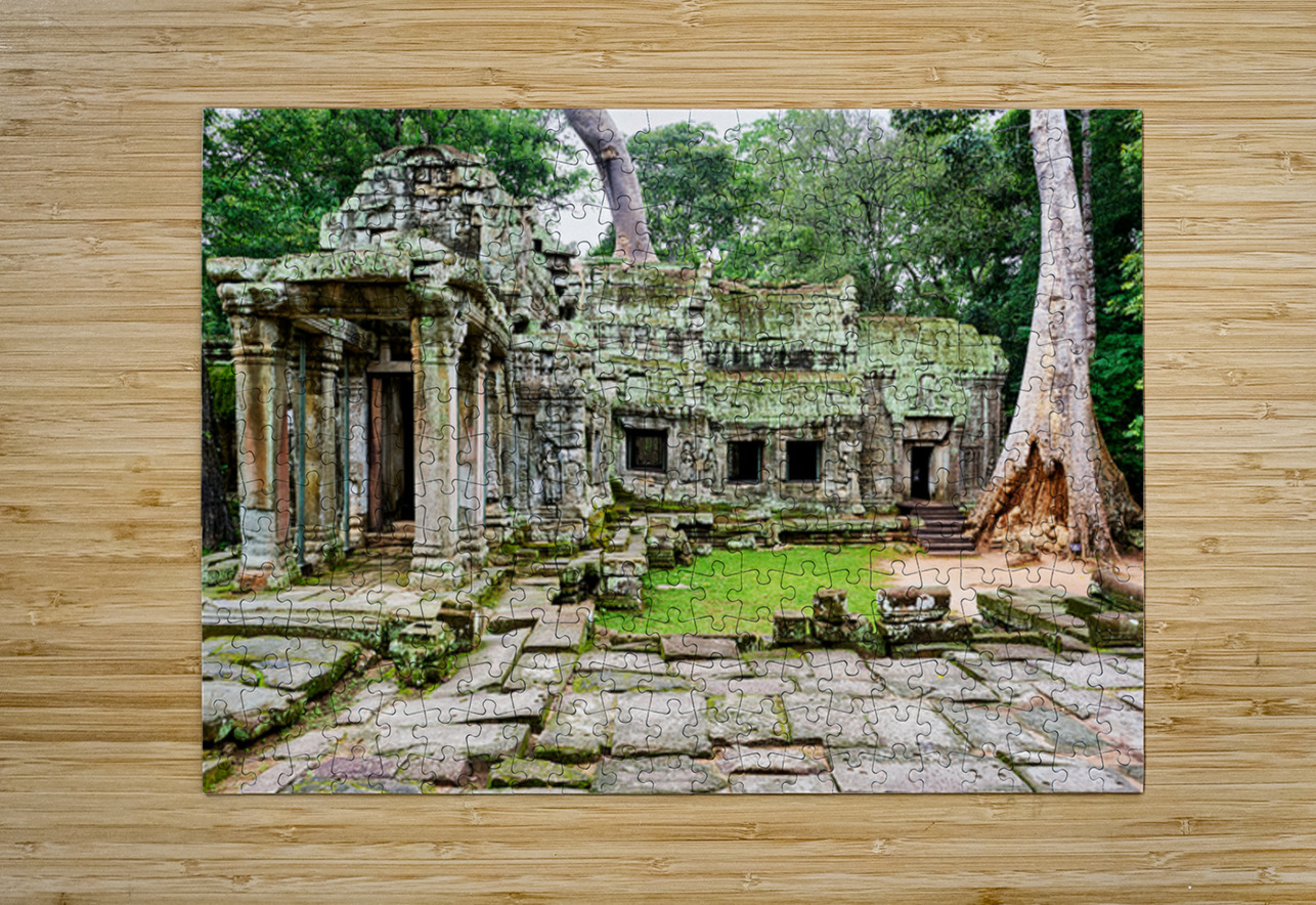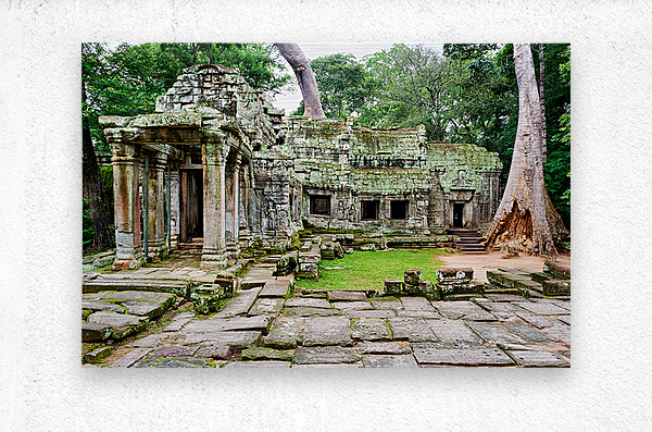 Overgrown ruins of Ta Prohm temple in Angkor Cambodia where giant trees embrace ancient stone illustrating natures powerful reclamation.