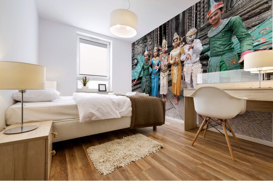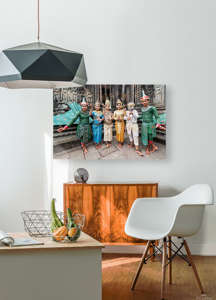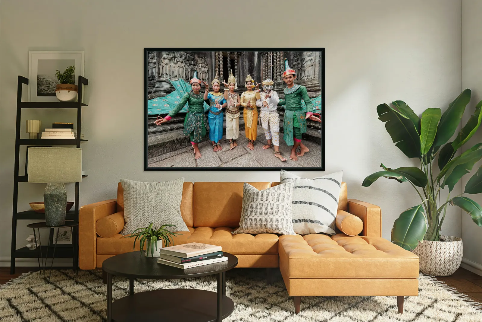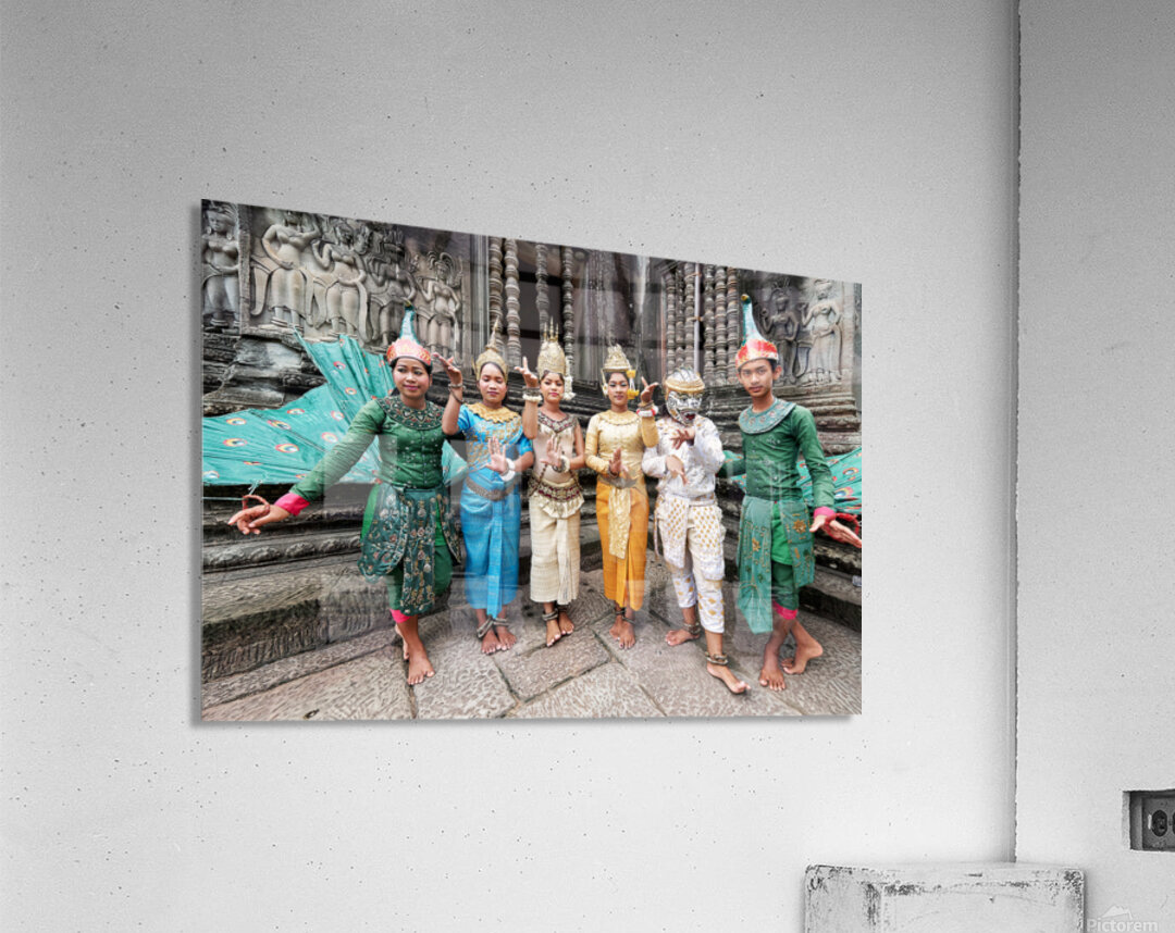Cambodian dancers in traditional Apsara and Hanuman costumes pose at Angkor Wat Siem Reap Cambodia showcasing their cultural heritage.