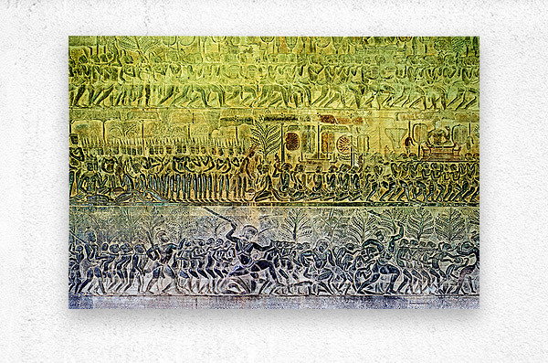 Khmer bas-reliefs at Angkor Wat Cambodia show processions ceremonies and battles. These carvings depict ancient life religious devotion and epic tales...[+]