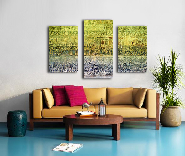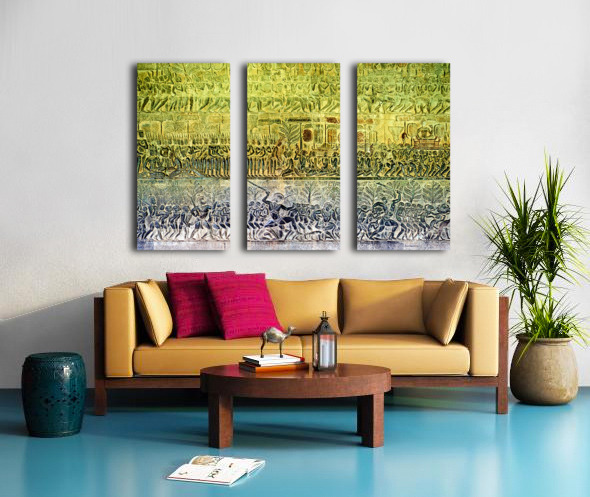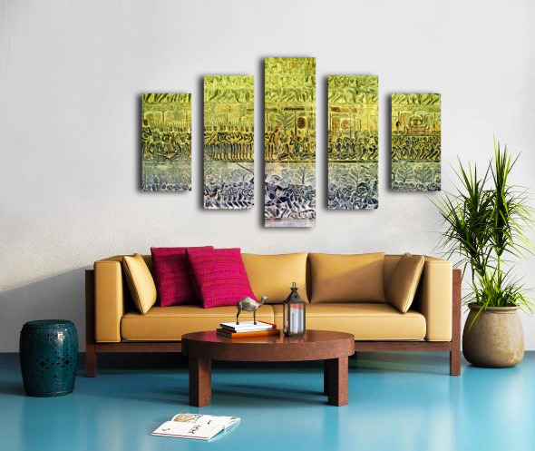 Ancient bas reliefs depicting processions deities and battles. Frame print