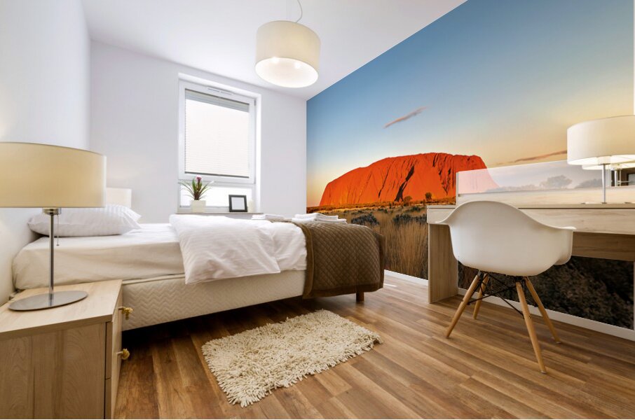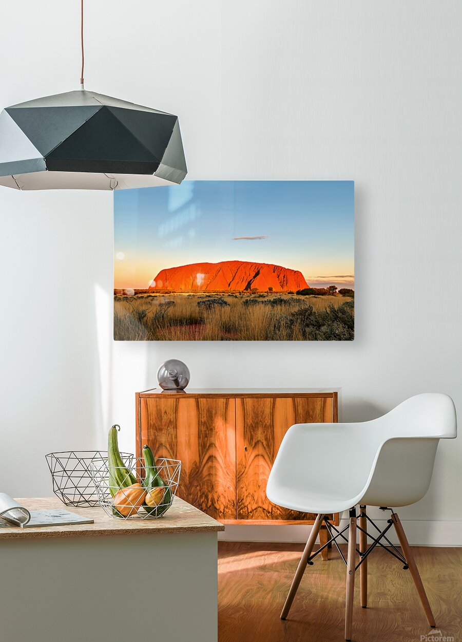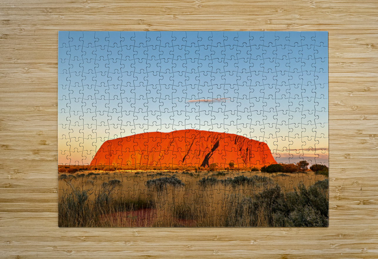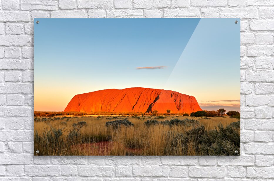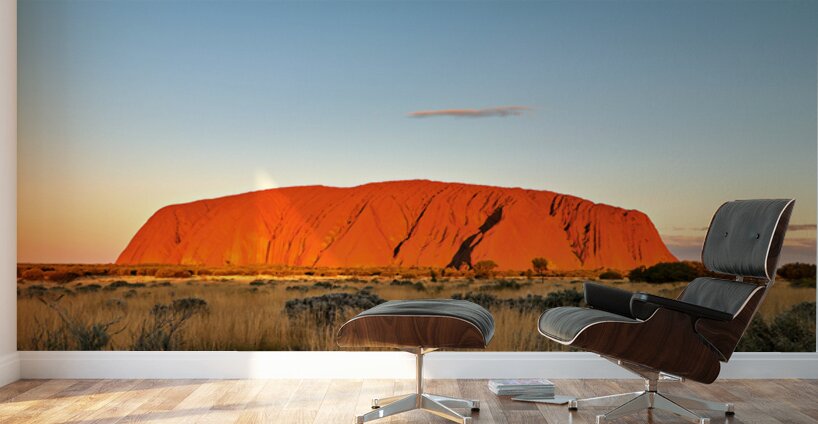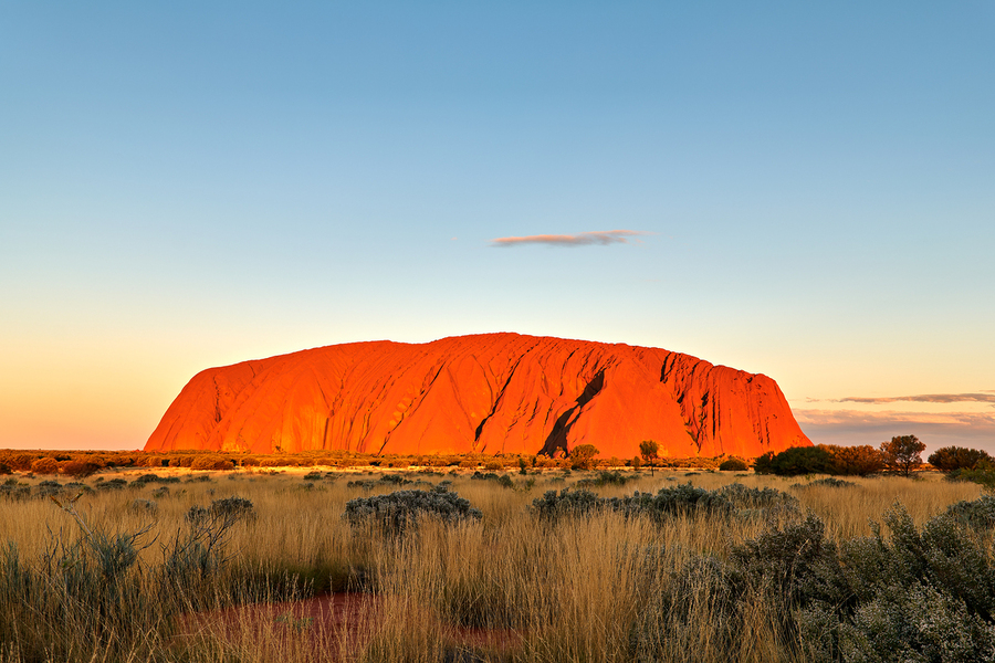 Uluru also known as Ayers Rock glows orange at sunset in Australias Northern Territory. This sacred site is a significant landmark for the Anangu peop