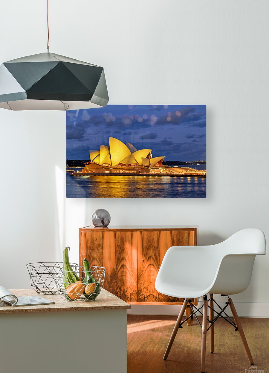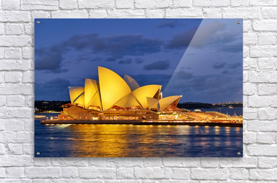 ABOUT THIS ARTWORK: SYDNEY OPERA HOUSE ILLUMINATED AT DUSK WITH HARBOR LIGHTS.