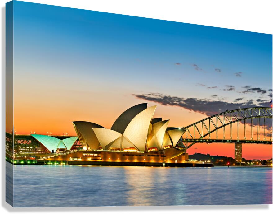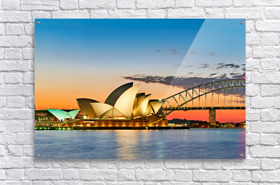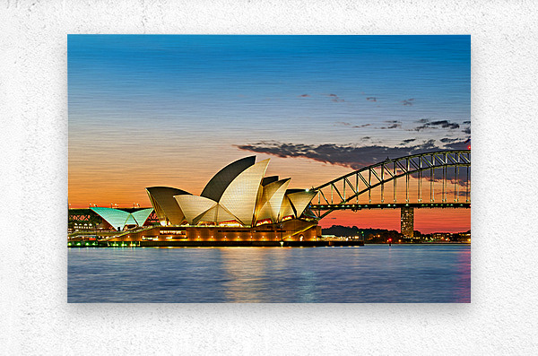 ABOUT THIS ARTWORK: SYDNEY OPERA HOUSE AND HARBOUR BRIDGE AT SUNSET.