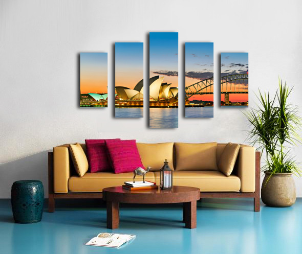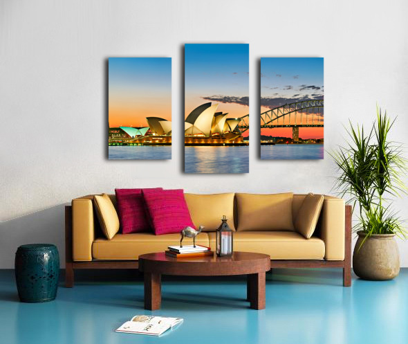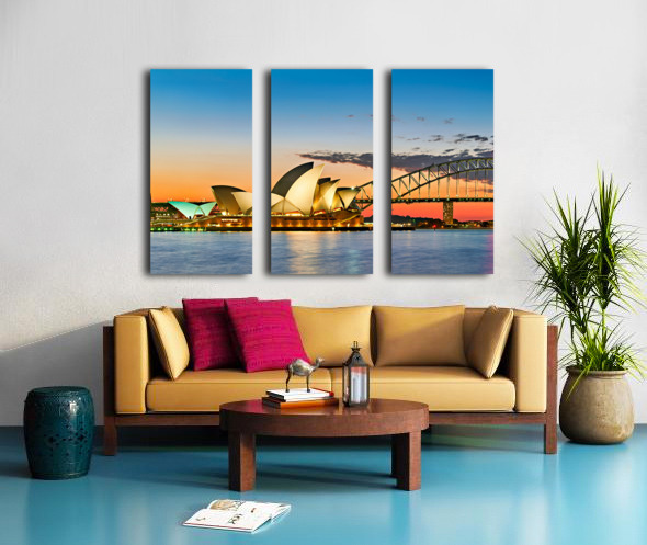 Sydney Opera House and Harbour Bridge at sunset. Frame print