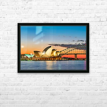Sydney Opera House and Harbour Bridge at sunset. Picture Frame Printing