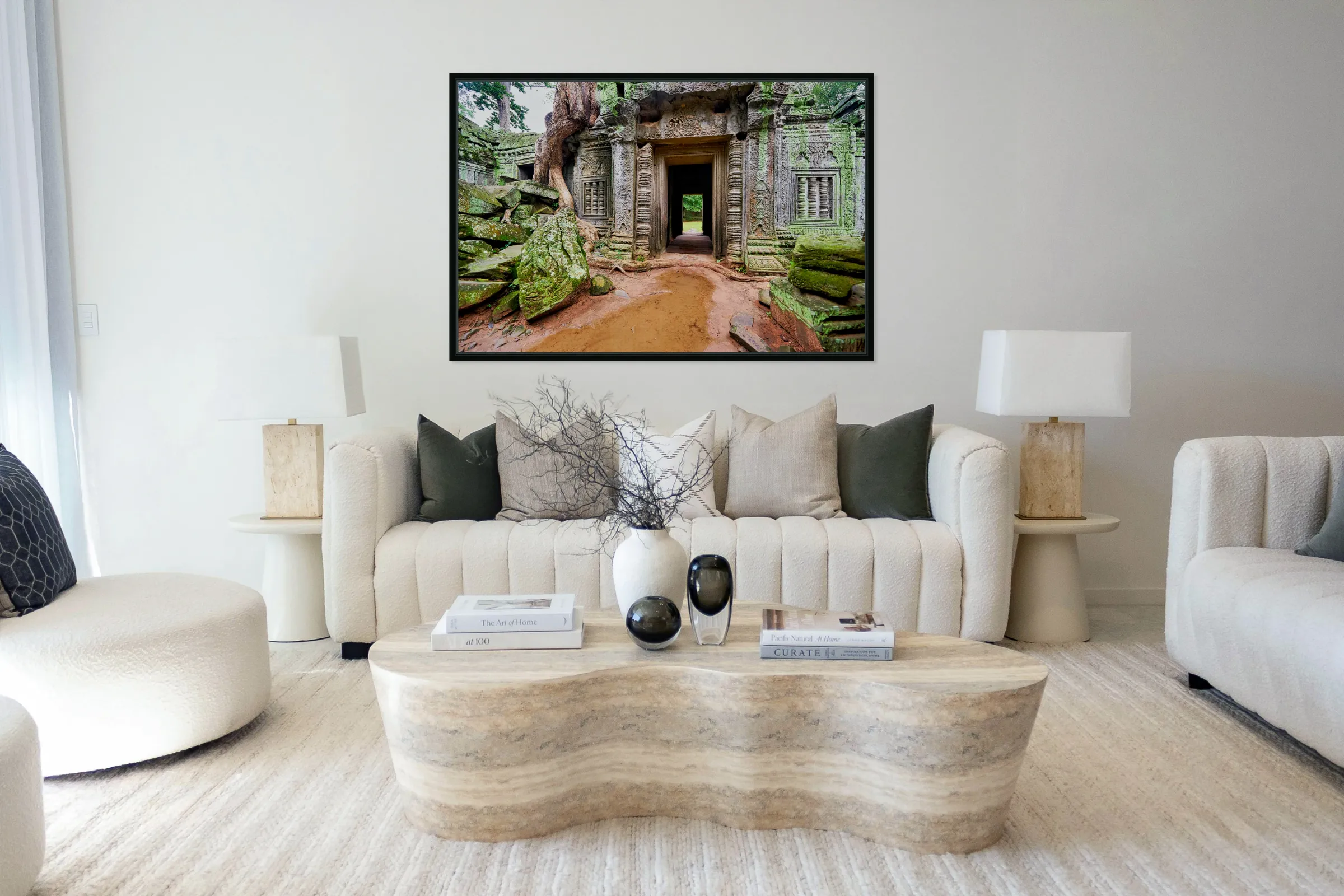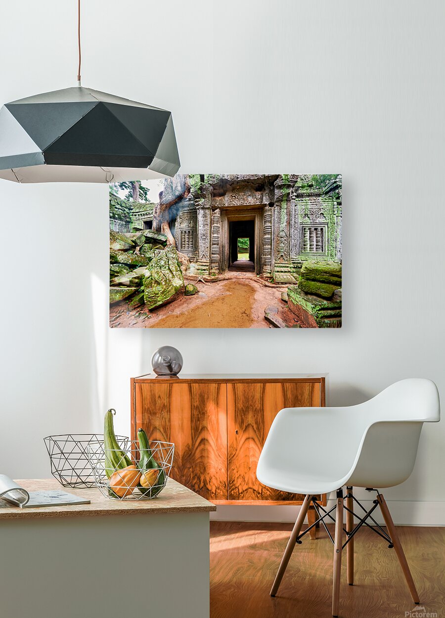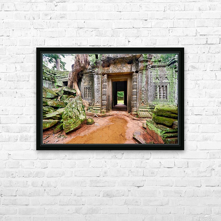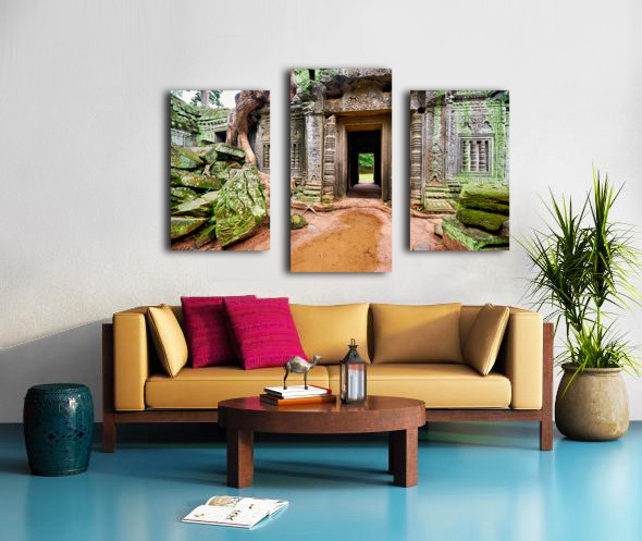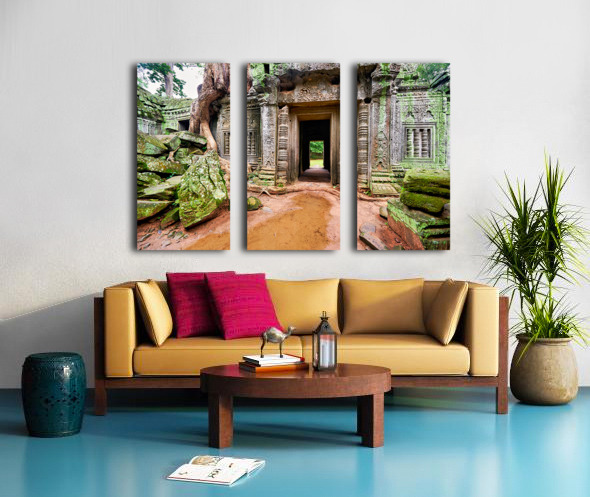 Ancient temple ruins overgrown by trees and moss. Frame print