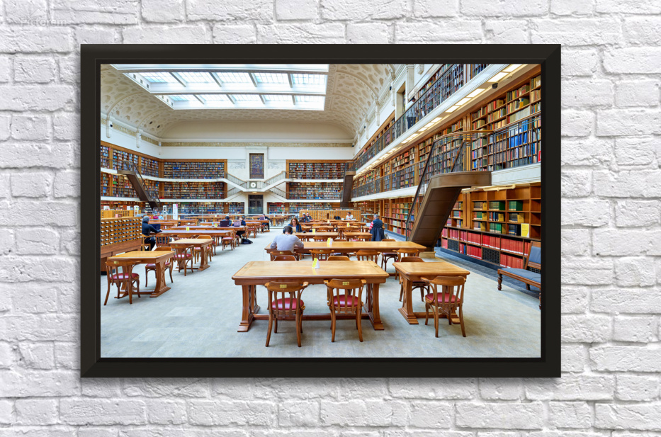 "Students study in spacious library reading room at Mitchell Libr" in a framed print.