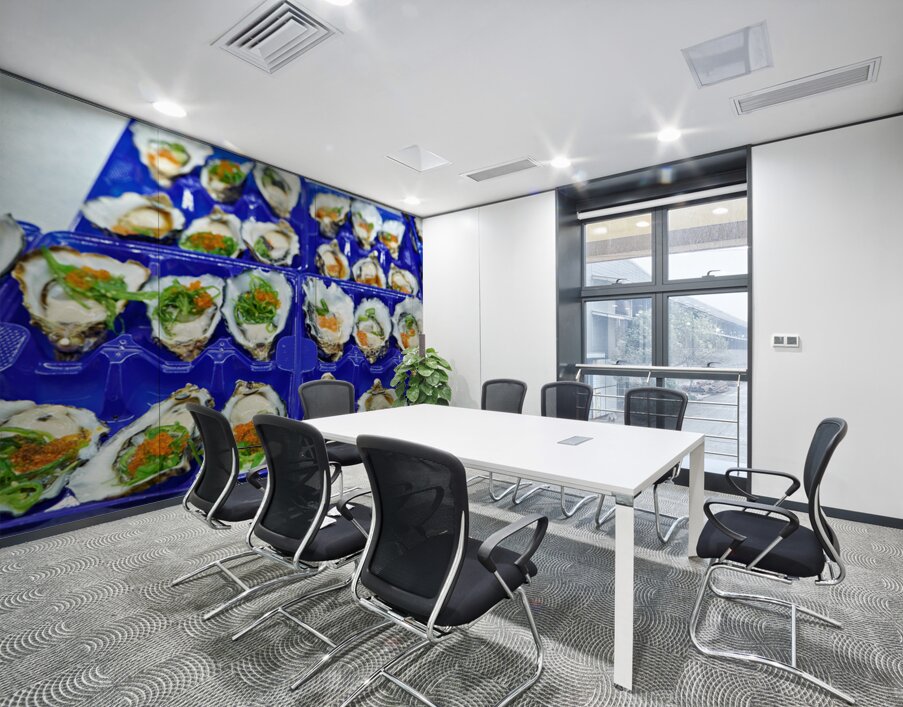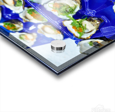 Fresh oysters with garnishes in blue trays. Marco Brivio Puzzle printing