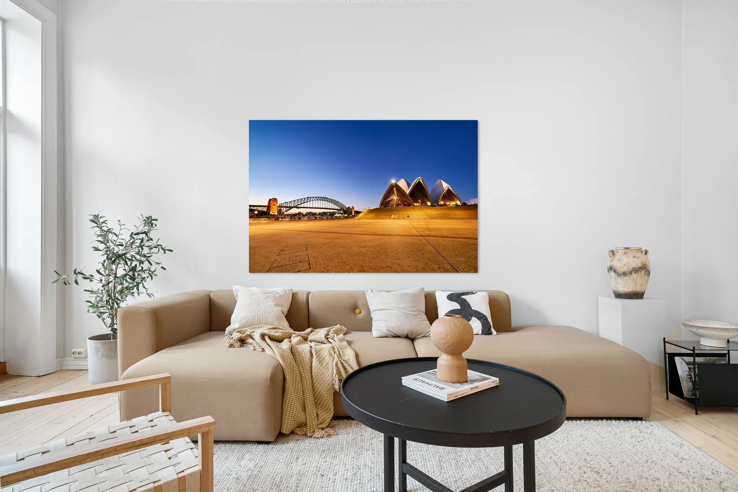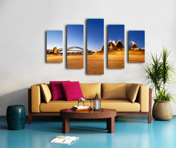 Sydney Opera House and Harbour Bridge at dusk. Frame print