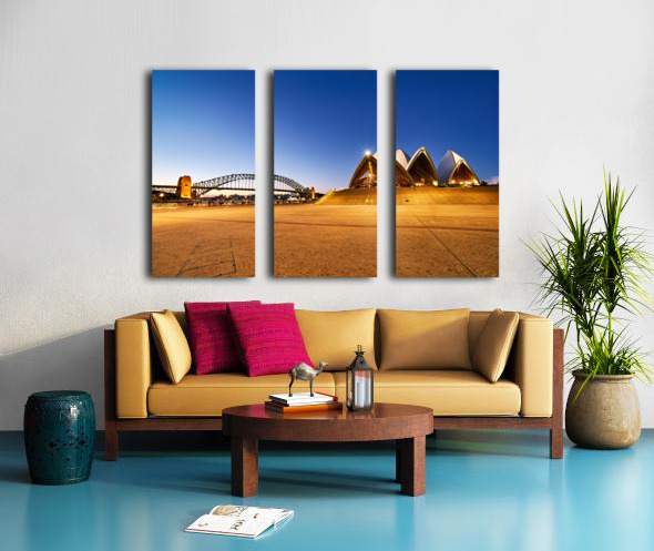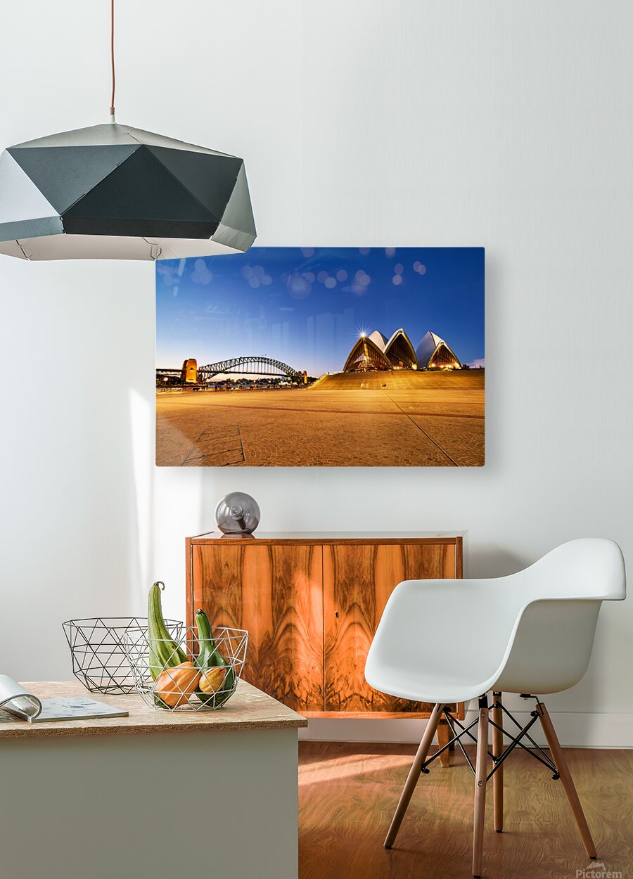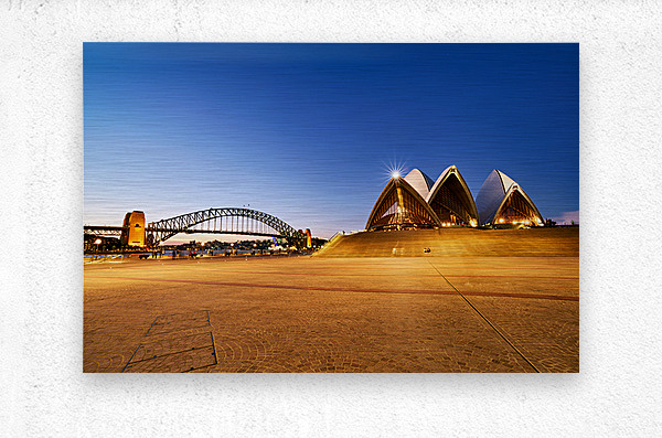 ABOUT THIS ARTWORK: SYDNEY OPERA HOUSE AND HARBOUR BRIDGE AT DUSK.