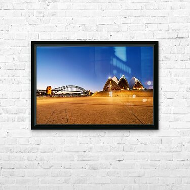 Sydney Opera House and Harbour Bridge at dusk. Picture Frame Printing