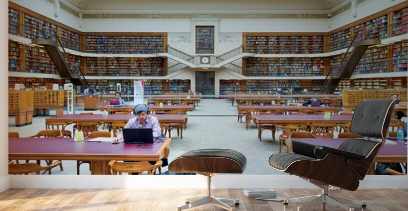 Grand library in Sydney with students and researchers at work Picture Frame Printing