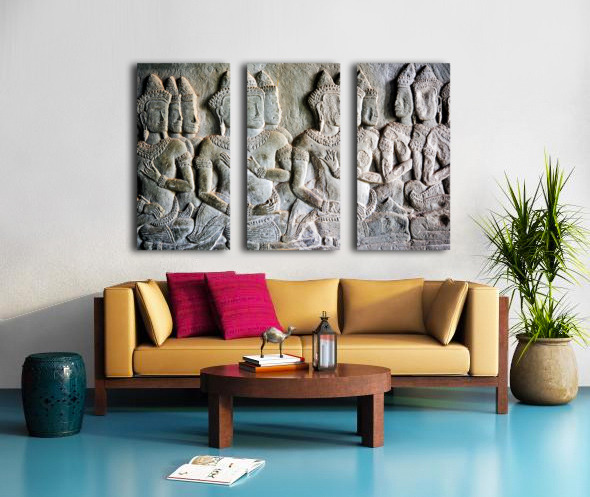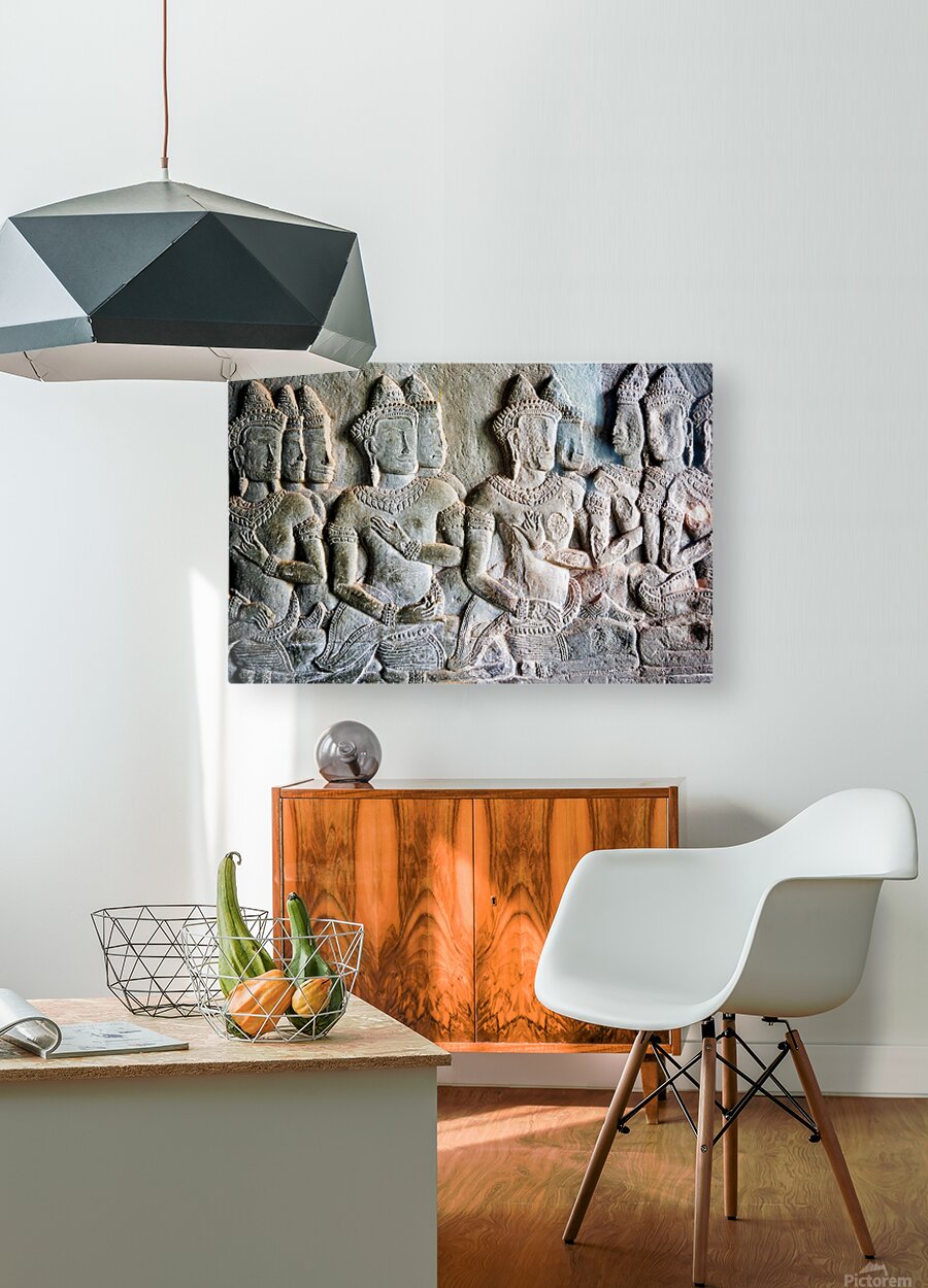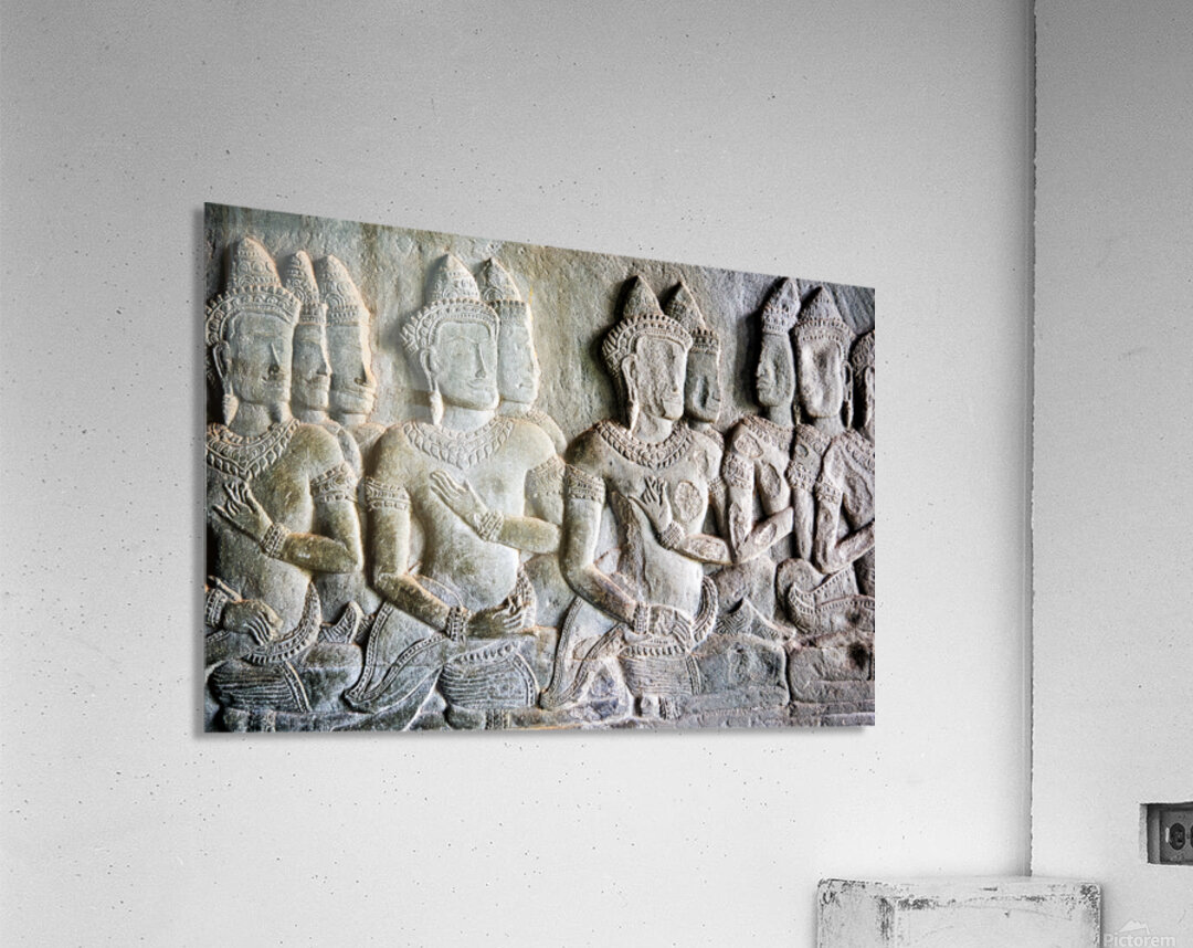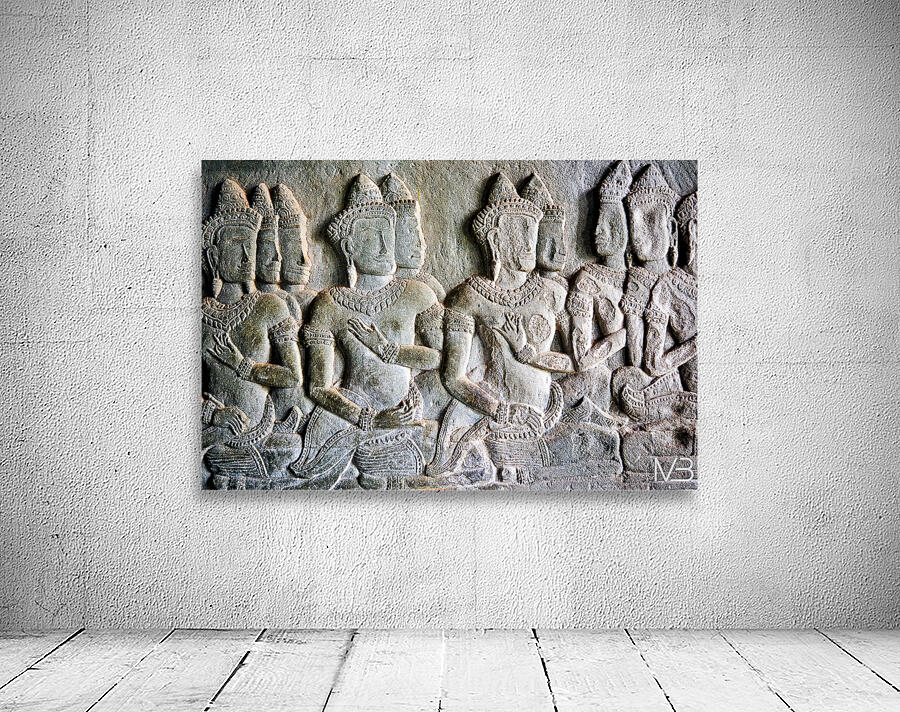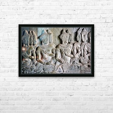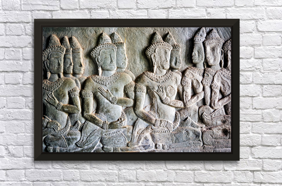 Intricate bas-reliefs of Apsaras celestial dancers adorning the walls of Angkor Wat temple in Siem Reap Cambodia showcasing ancient Khmer art.