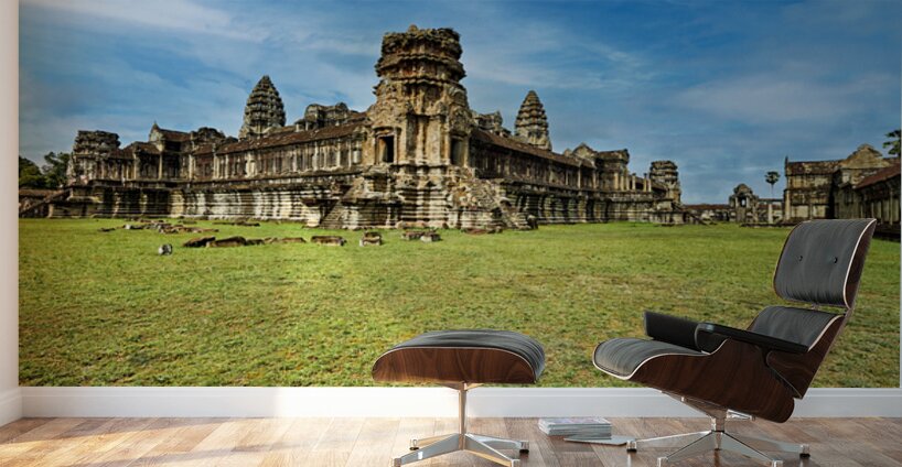 ABOUT THIS ARTWORK: ANGKOR WAT TEMPLE COMPLEX WITH GREEN GRASS AND BLUE SKY.