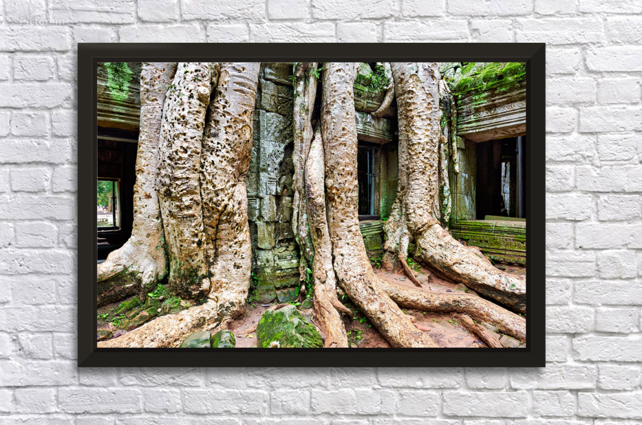 Giant tree roots intertwine with ancient stone walls at Ta Prohm temple Angkor Cambodia showcasing natures power over time.