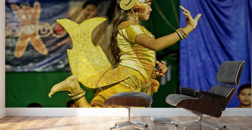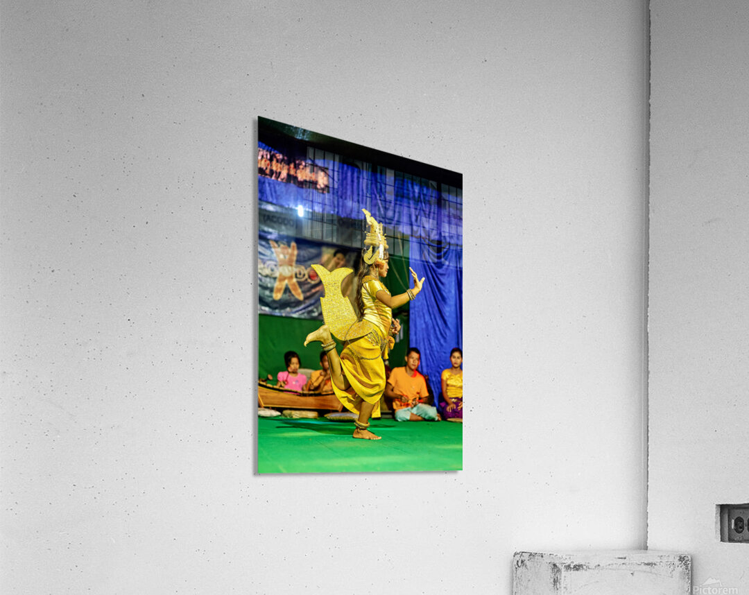A young Cambodian girl performs a traditional Apsara dance in golden costume showcasing her countrys rich cultural heritage possibly at an ACODO event