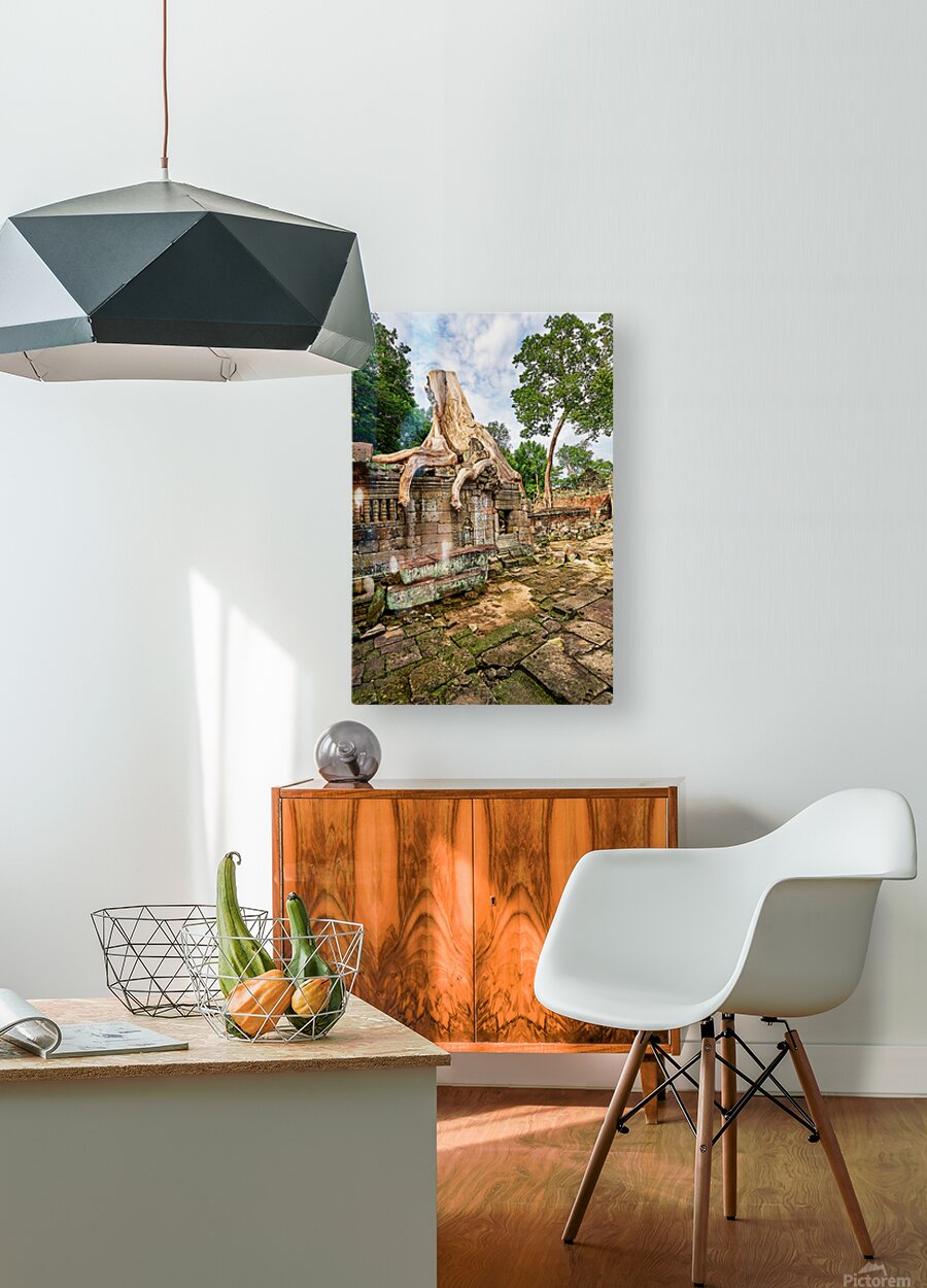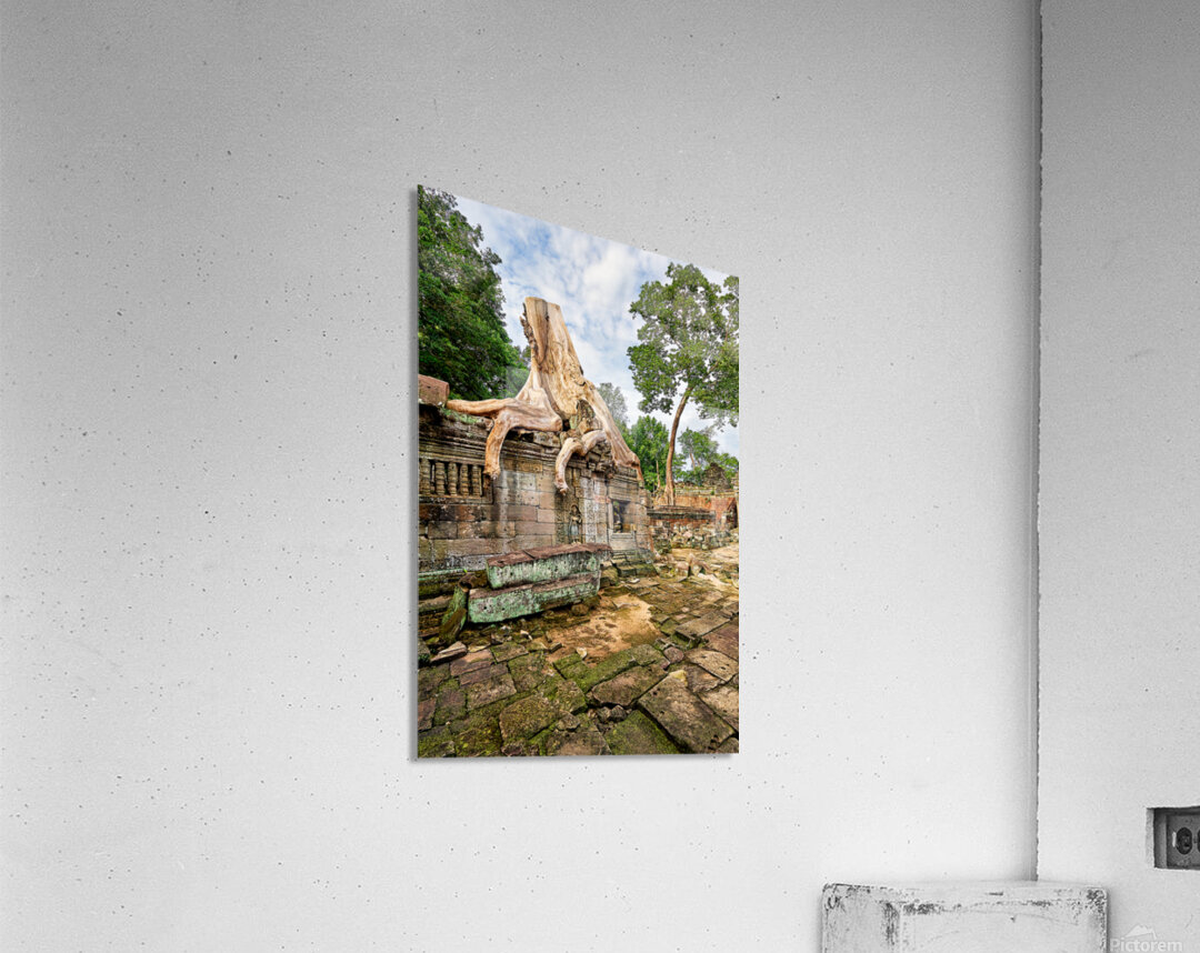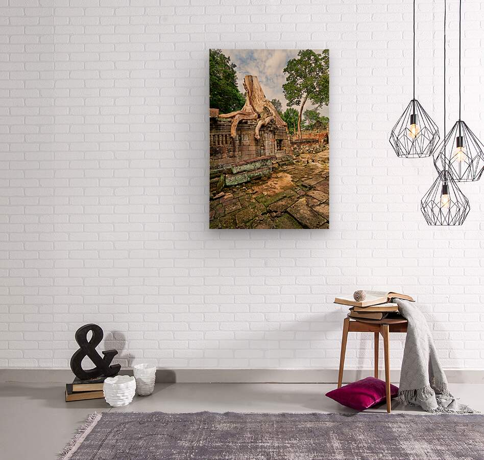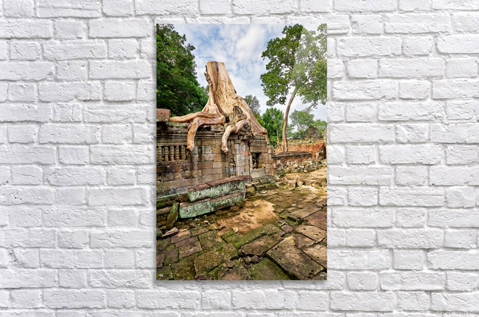 Massive tree roots engulf ancient temple ruins at Angkor Cambodia showcasing natures powerful reclamation of historical sites over centuries.