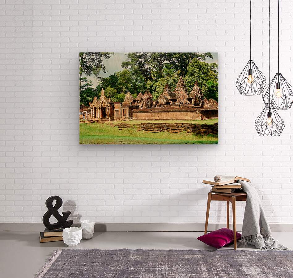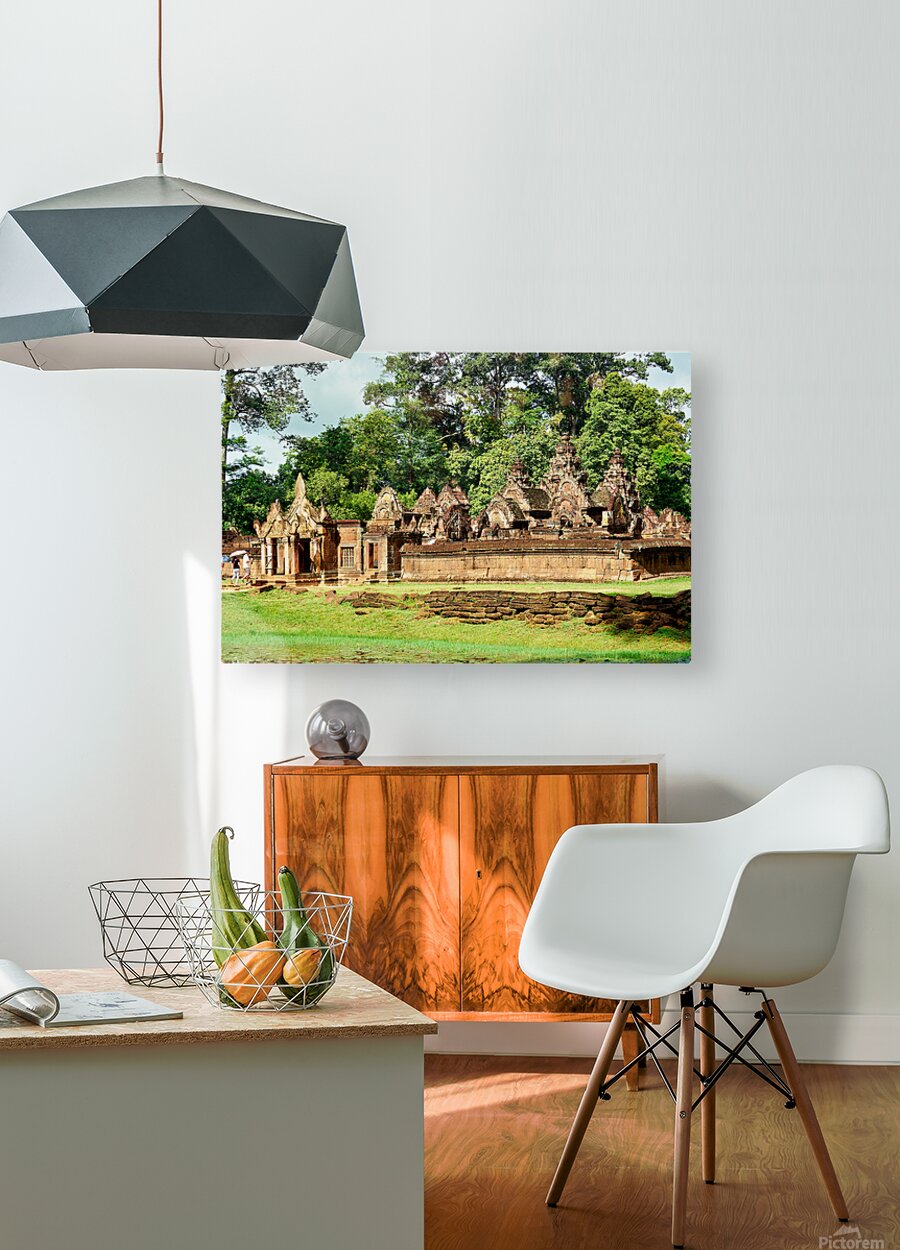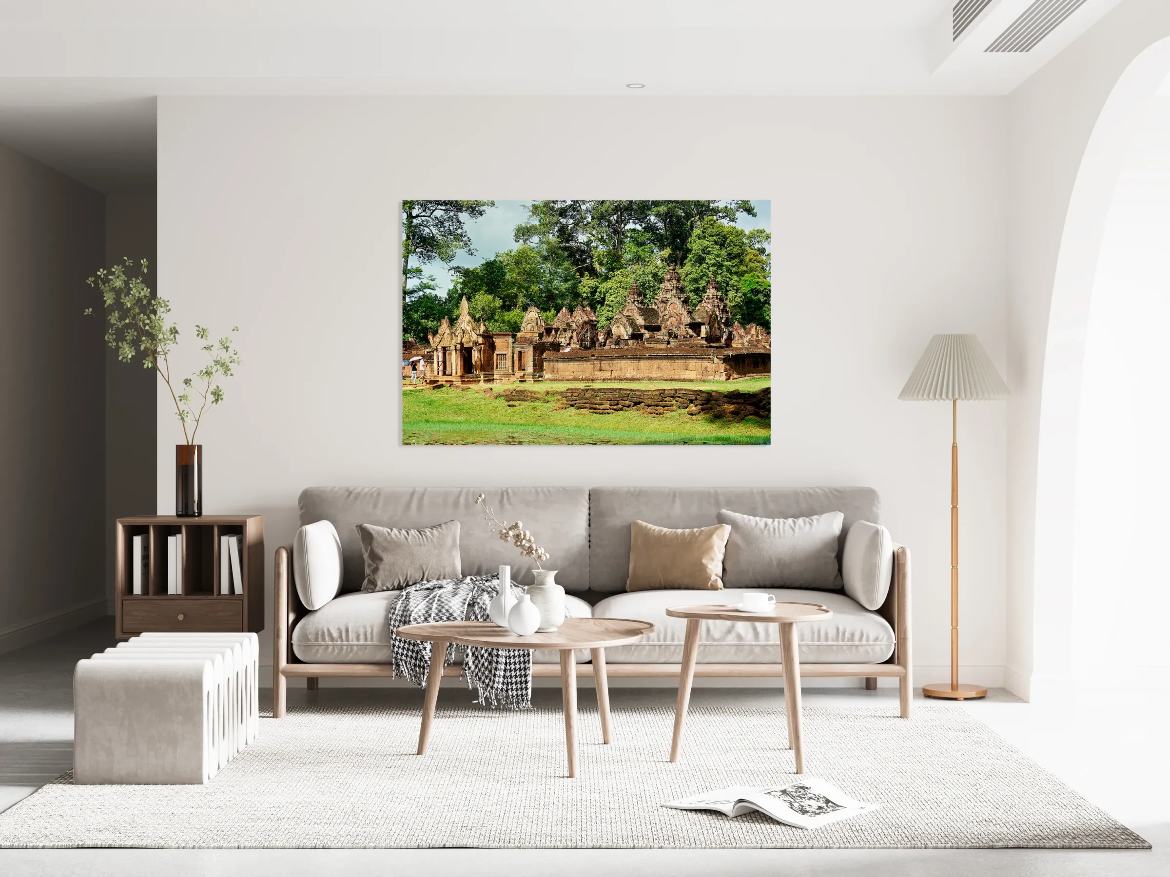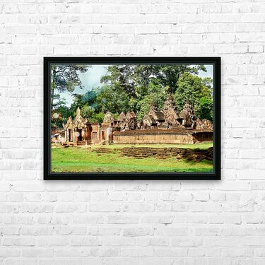 Ancient stone temple complex surrounded by lush jungle and water Frame print