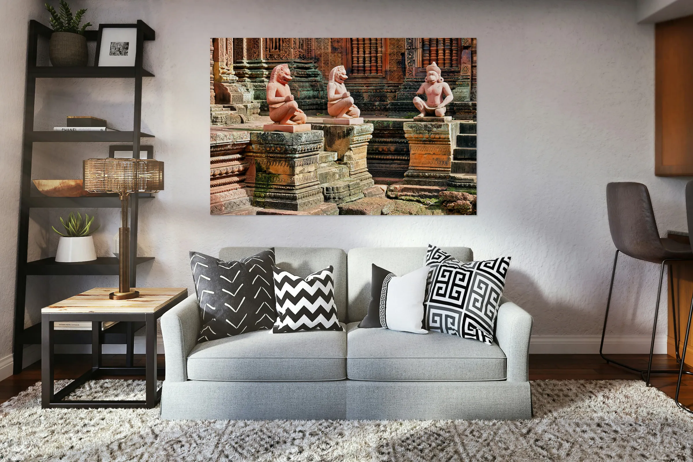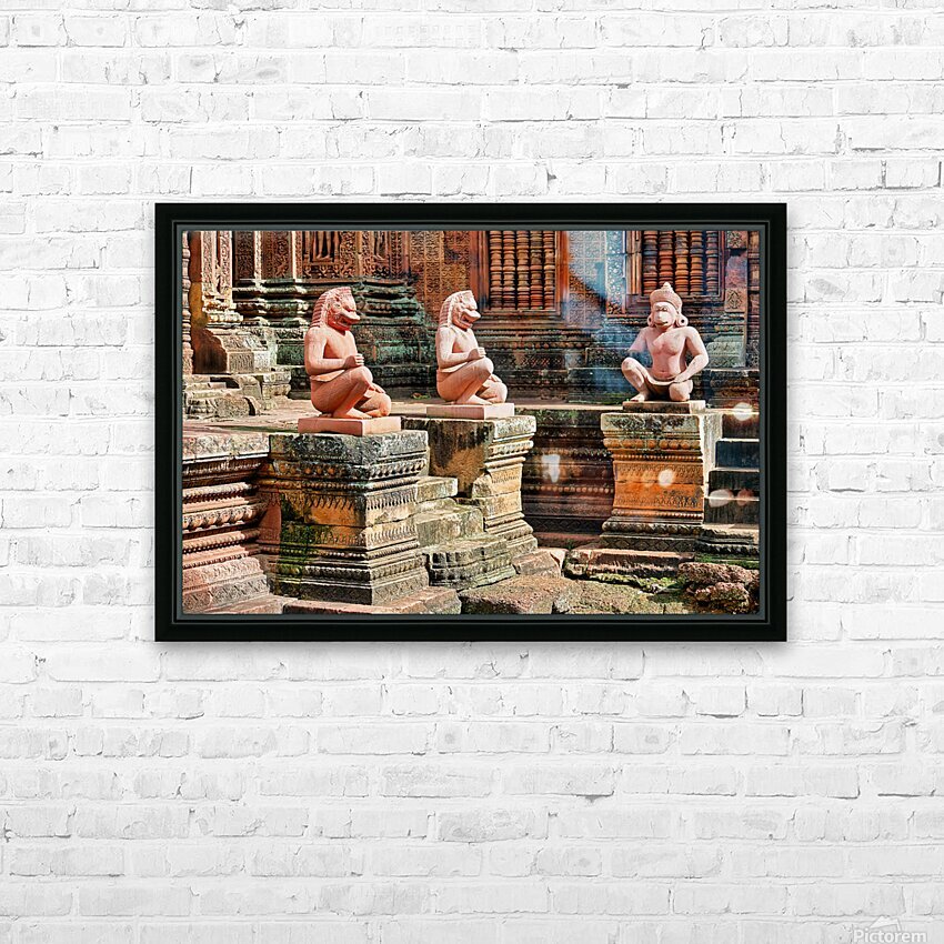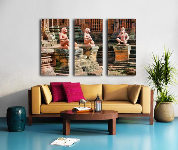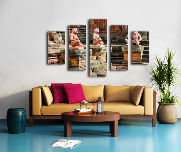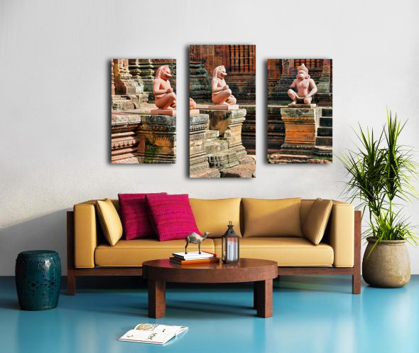 Ancient temple with guardian statues and ornate carvings. Frame print