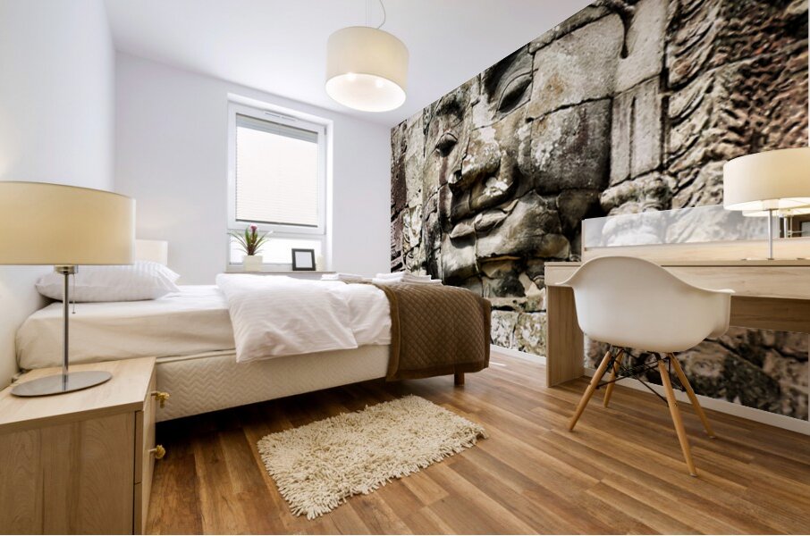 ABOUT THIS ARTWORK: SERENE STONE FACE CARVING BAYON TEMPLE ANGKOR.
