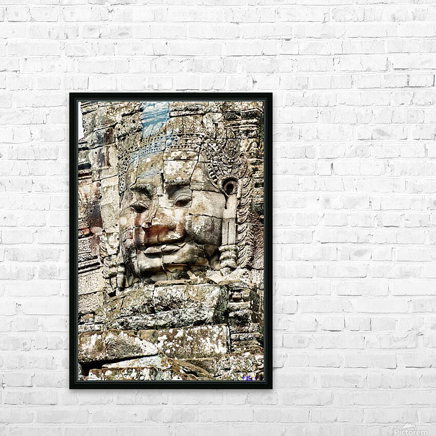 Serene stone face carving Bayon temple Angkor. Picture Frame Printing
