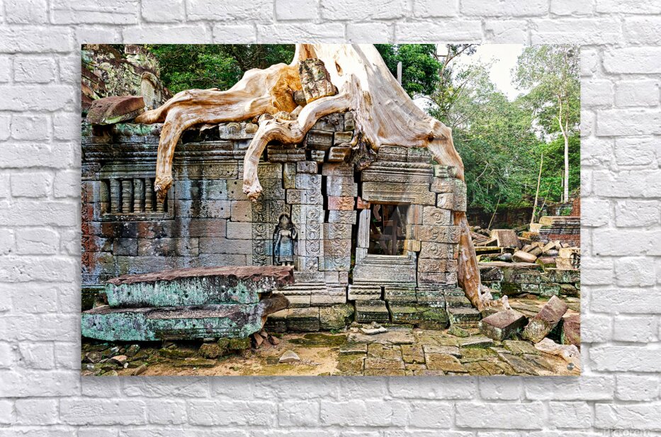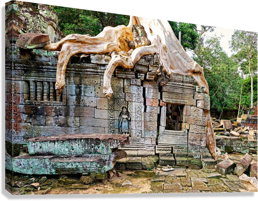 Get this artwork "Massive tree roots engulf ancient stone temple ruins." in a framed print.