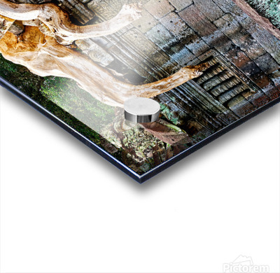 Massive tree roots engulf ancient stone temple ruins. Picture Frame Printing