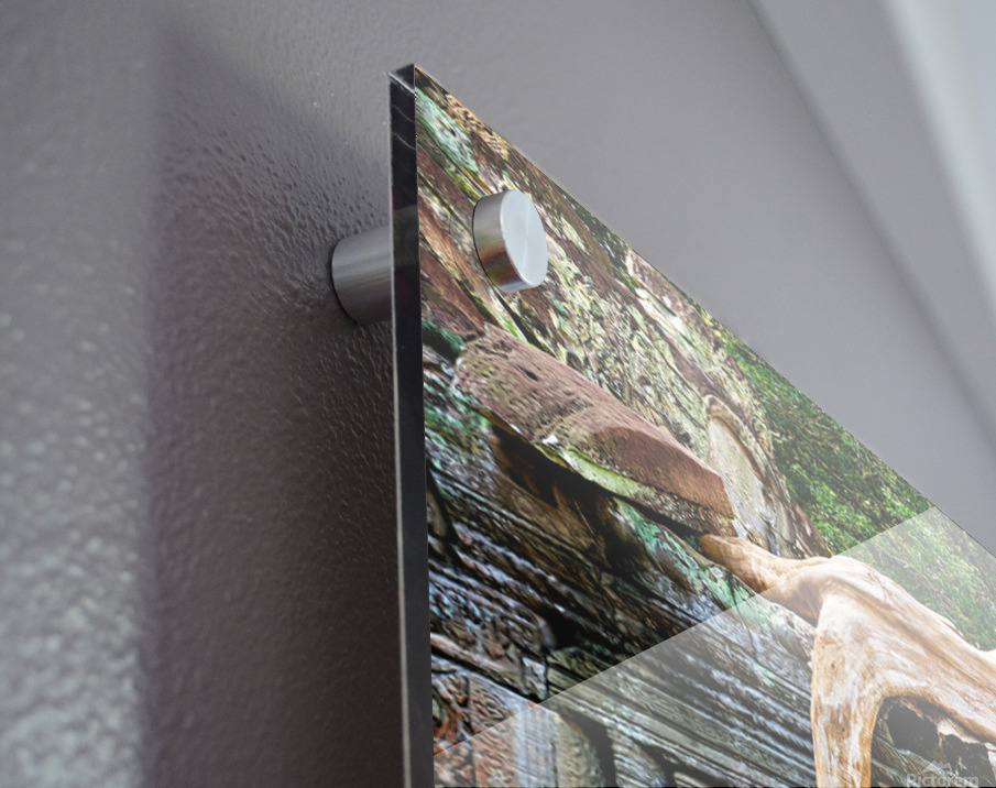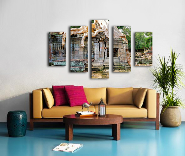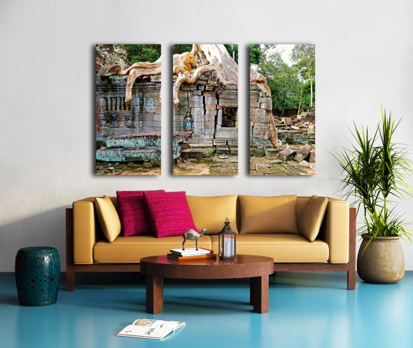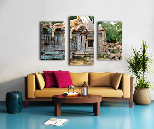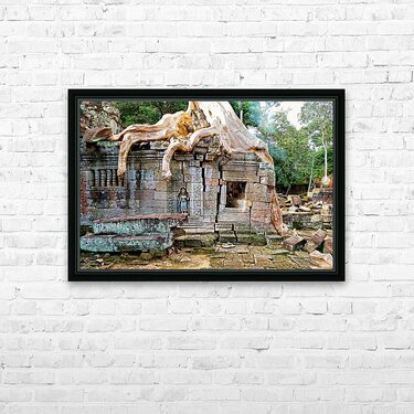 Massive tree roots engulf ancient stone temple ruins. Frame print