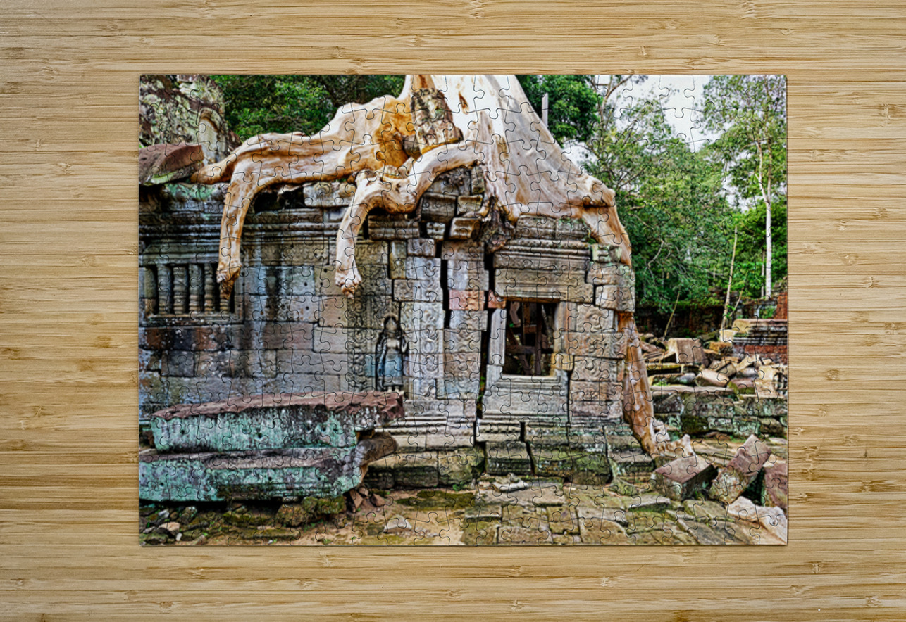 Massive tree roots engulf ancient stone temple ruins. Marco Brivio Puzzle printing