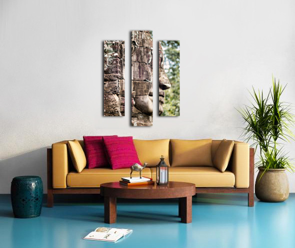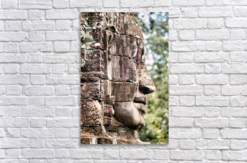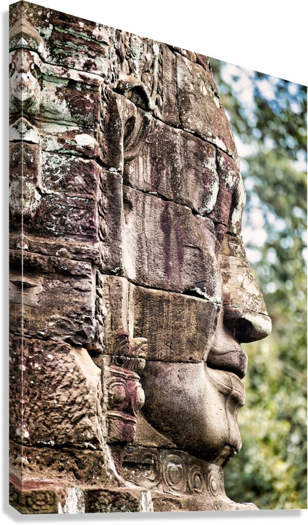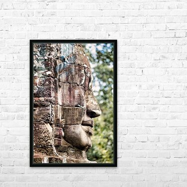 Weathered stone face carving from an ancient temple. Frame print