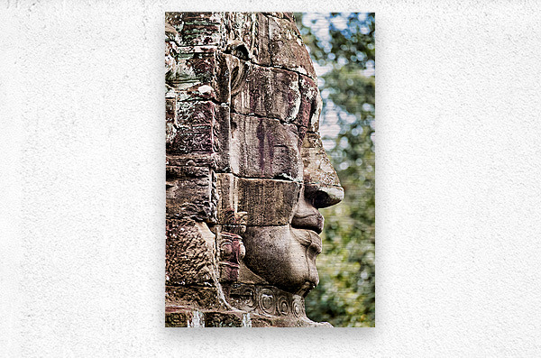 ABOUT THIS ARTWORK: WEATHERED STONE FACE CARVING FROM AN ANCIENT TEMPLE.
