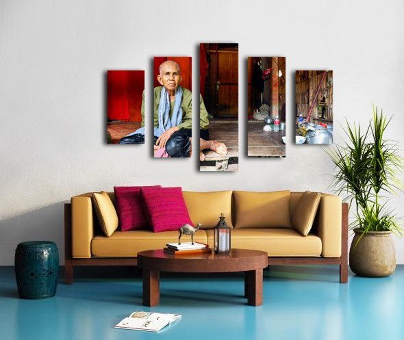 Elderly person sitting on floor in rustic dwelling. Marco Brivio Puzzle printing