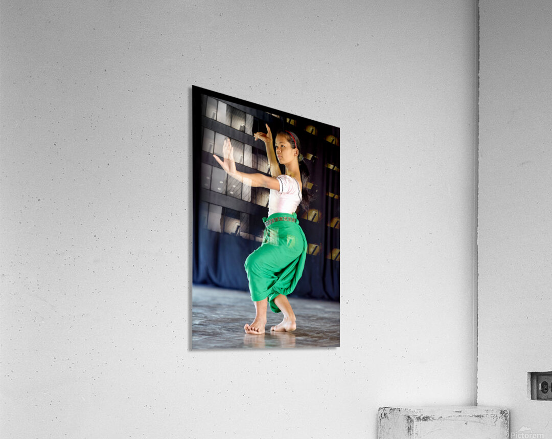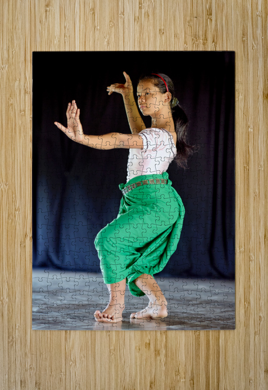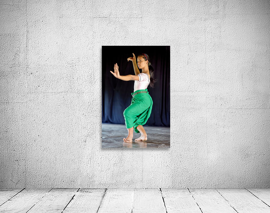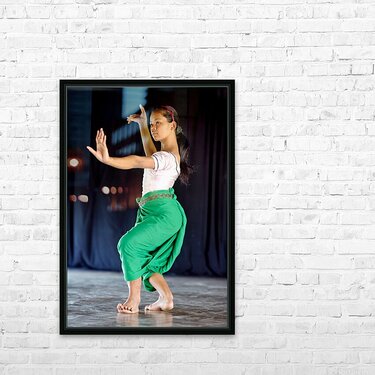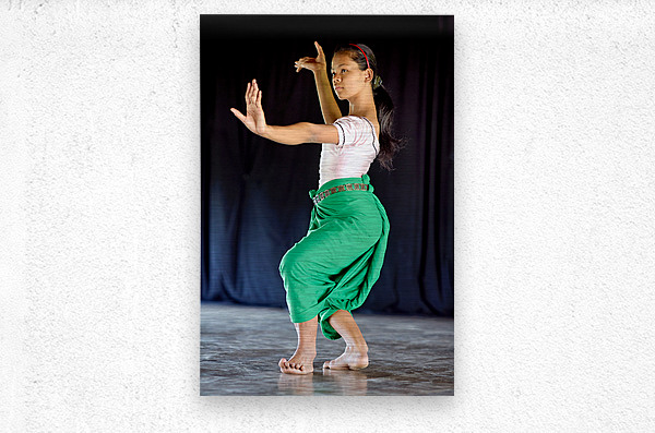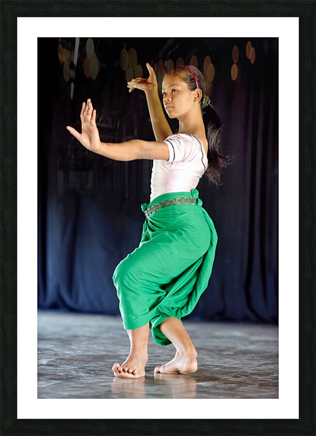 A young girl performs a traditional Southeast Asian dance showcasing cultural heritage with elegant hand gestures and green attire.
